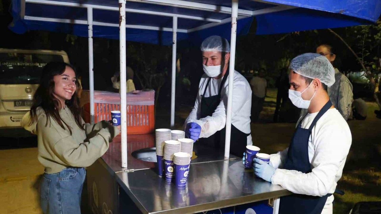 Büyükşehir Belediyesi Sosyal Yardımlar Şube Müdürü Funda Alpaslan Talay, Antalya Büyükşehir Belediyesi olarak, vize haftasında öğrencilerin içini ısıtmaya geldiklerini söyledi. Talay, "3-14 Kasım tarihleri arasında her akşam 22:00-23:00 saatleri arasında, Merkez Kütüphane önünde öğrencilerimize sıcak çorba ikramımız var. Antalya Büyükşehir Belediyesi olarak, ders çalışılan uzun gecelere, soğuk havaya, sınav stresine iyi gelecek bir mola için sizi çorba ikramımızla merkez kütüphane önüne bekliyoruz " dedi.