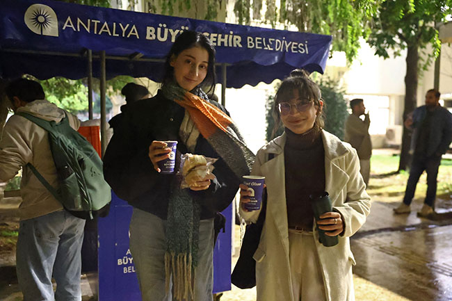 Maliye Bölümü öğrencilerinden Kübra Torun, sınavlara hazırlandığını belirterek, "Çok yoğun bir tempoda çalışıyoruz. Ders aralarında sıcak çorba içmek iyi geliyor. Bugün de en sevdiğim çorba tarhana ikramı var. Böyle bir hizmetten çok memnunuz. Çok teşekkür ederiz" dedi. Matematik bölümü öğrencisi Elçin Künefeci, sınavlara hazırlanmaktan yemek yemeye bile zaman ayıramadıklarını belirterek, "Vize haftasında da Büyükşehir Belediyesi’nin çorba ikramı olmuştu. Özellikle soğuk havalarda dağıtılan bu çorba çok iyi geliyor" diye konuştu.