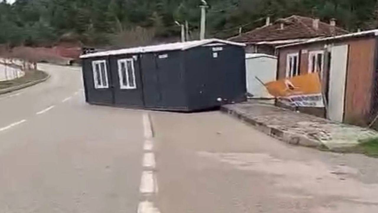 Nilüfer ilçesi Orhaneli yolunda da bir konteyner seyir haline geçti. Fırtına sebebiyle otobüs durağı devrildi.