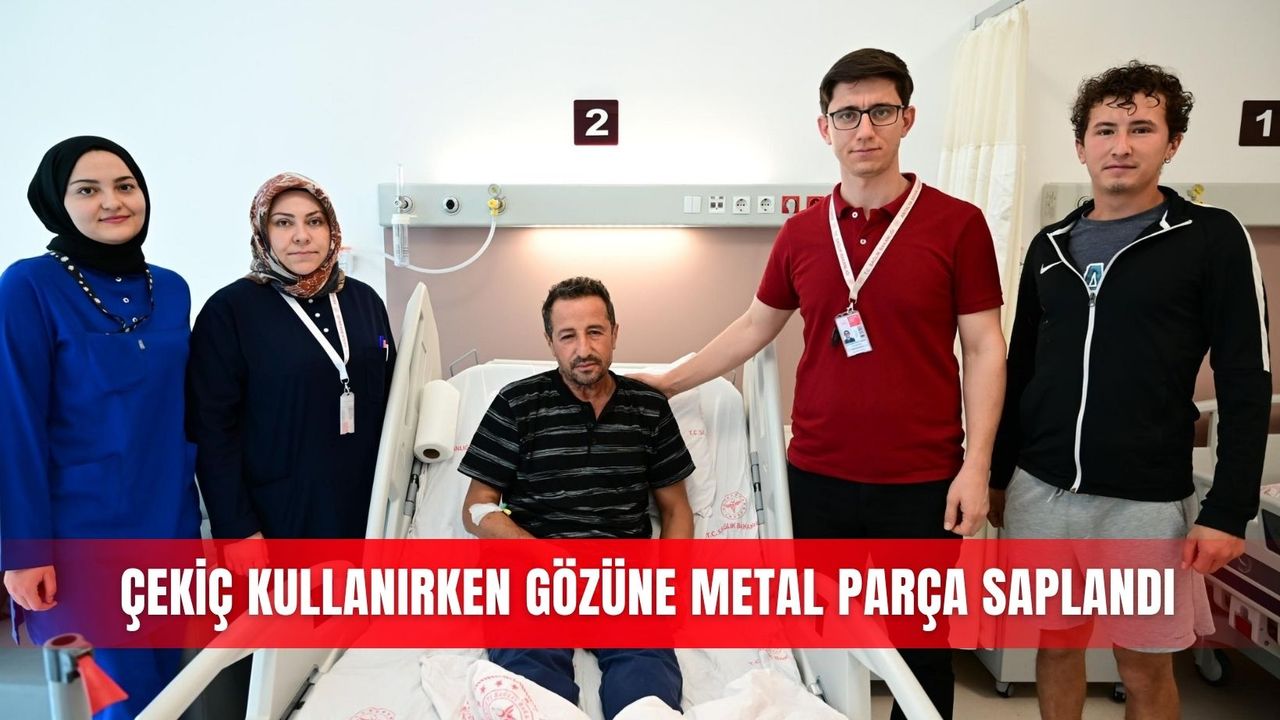 Antalya Şehir Hastanesi Göz Hastalıkları Kliniğine, çalışma sırasında çekiç kullanırken gözüne metal parça isabet eden bir hasta ani görme kaybı şikayetiyle başvurdu. Acil değerlendirmede hastanın göz içinde yoğun kanama ve göz içine saplanmış yabancı cisim tespit edildi.