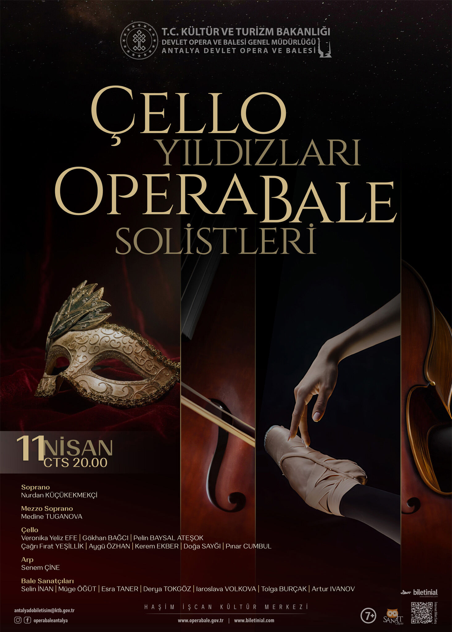 Antalya Devlet Opera ve Balesi, 11 Nisan Cumartesi saat 20.00'de Haşim İşcan Kültür Merkezi Opera Sahnesi'nde sanatseverleri özel bir konsere davet ediyor. 'Çello Yıldızları ve Opera Bale Solistleri' konseri, yaylı sazların etkileyici armonisini opera ve bale sanatlarıyla ile bir araya getirerek sahnede doyumsuz bir anlatıya dönüşüyor.