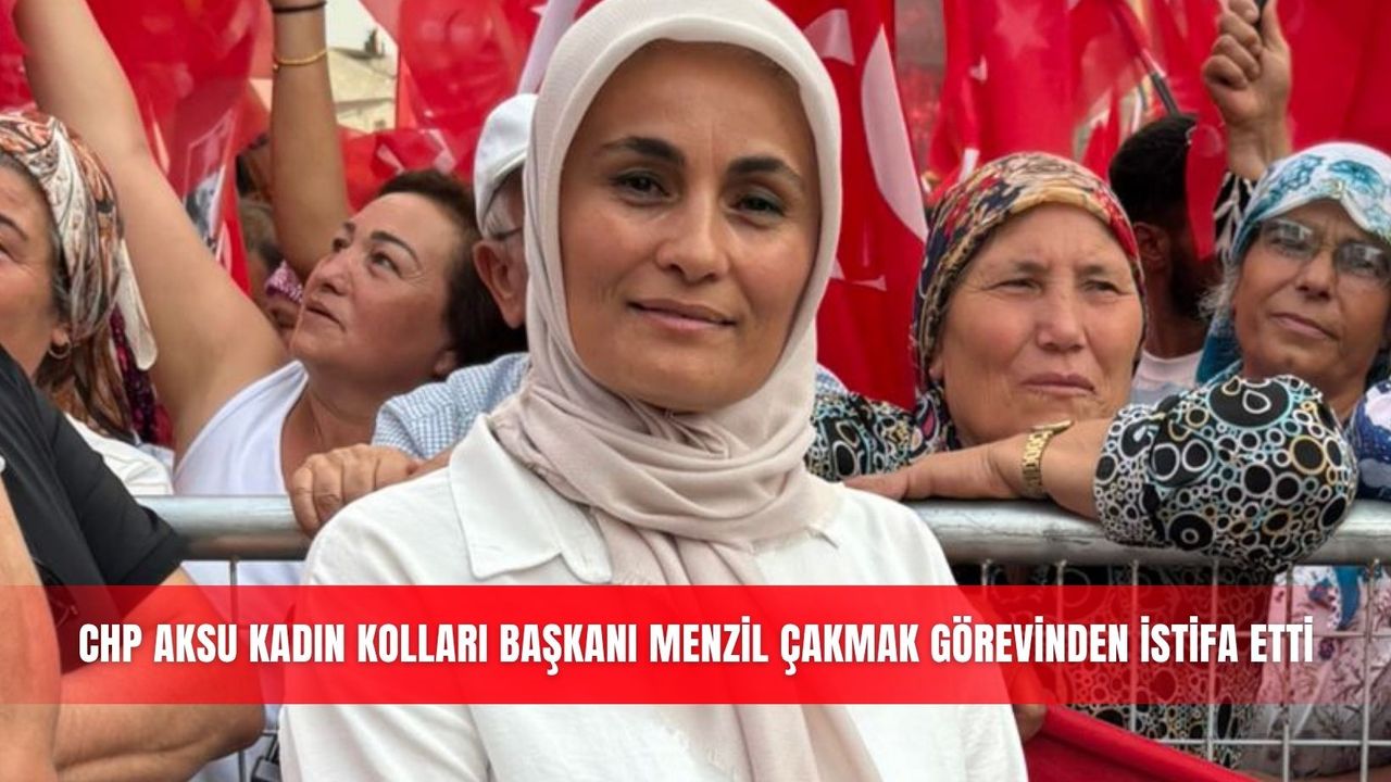 CHP Aksu Kadın Kolları Başkanı Menzil Çakmak, görevinden istifa ettiğini sosyal medya hesabından duyurdu. Çakmak, yaptığı yazılı açıklamada, "Geçtiğimiz süreçte yaşanan ve partimizin büyüme çabalarını engelleyen uygulamalar nedeniyle görevimi sürdürmenin artık mümkün olmadığı kanaatine vardım" ifadelerini kullandı.