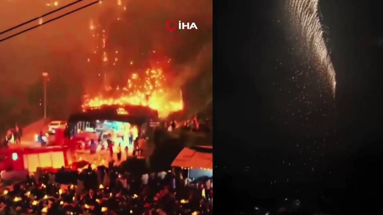 Çin’in Hunan eyaletindeki Liuyang kentinde facianın eşiğinden dönüldü. İHA’lar ve havai fişekler kullanılarak gerçekleştirilen bir gösteri henüz kesin olarak bilinmeyen bir nedenle kontrolden çıktı. Gökyüzünden yağan ateş topları ve kıvılcımlar bölgede yangın çıkmasına yol açarken, izleyicilerin panik halinde kaçmaya çalıştığı anlar amatör kameralara yansıdı.