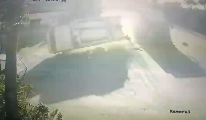 Görüntülerde, çöp kamyonunun sağ tarafa dönüş yaptığı esnada arkadan gelen kamyonun çarpması, çöp kamyonunun devrilmesi ve kaza sonrası çöp kamyonun içinde bulunan bir personelin çevredekilerin yardımı ile çıkarılması yer aldı.