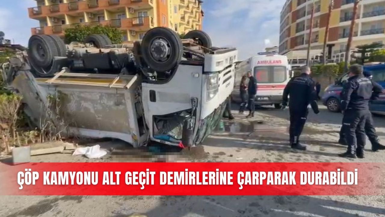 Kaza, saat 10.30 sıralarında Alanya D-400 karayolu üzerinde meydana geldi. Edinilen bilgilere göre, H.Ö.'nün kullandığı 07 ASJ 492 plakalı Alanya Belediyesine ait çöp kamyonu, D-400 karayolundan sağ tarafa dönmek istediği sırada, aynı güzergahta seyir halinde bulunan G.D. idaresindeki 09 AIC 924 plakalı kamyon arkadan çarptı. Çarpmanın etkisiyle savrulan çöp kamyonu yol kenarında bulunan alt geçit demirlerine çarparak durabildi. Kaza sırasında yol kenarında bulunan 07 AUN 880 plakalı elektrikli motosiklet ise devrilerek çöp kamyonunun altında kaldı. Elektrikli motosiklette kimsenin bulunmaması faciayı önledi. İhbar üzerine olay yerine itfaiye, sağlık, jandarma ve polis ekipleri sevk edildi. Kazada çöp kamyonu sürücüsü H.Ö. ağır yaralı olarak hastaneye kaldırılırken, çöp kamyonun içerisinde bulunan belediye personelleri M.G. ve H.Ü. de yaralı olarak hastaneye sevk edildi. Sürücü H.Ö'nün hayati tehlikesinin bulunduğu öğrenildi.