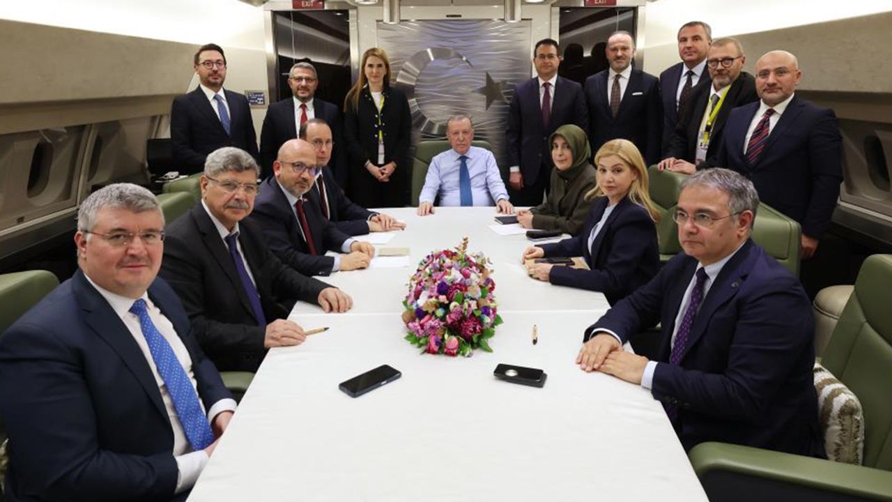 'İran-ABD gerginliğinin başlamasından sonra İran Cumhurbaşkanı Mesud Pezeşkiyan ve ABD Başkanı Donald Trump ile görüşmeleriniz oldu ve bir süreç başladı. Bu sürecin evrildiği nokta an itibariyle nedir?' sorusu üzerine Erdoğan, "Öncelikle Amerika ve İran arasındaki gerilimin bölgeyi yeni bir çatışmaya, kaosa sürüklemeden düşürülmesi için elimizden geleni yapıyoruz. Onun için de biliyorsunuz ABD Başkanı Donald Trump ile görüşmem oldu ve İran Cumhurbaşkanı Mesud Pezeşkiyan ile hemen ertesi gün görüştüm. İran Dışişleri Bakanı Abbas Arakçi ile de İstanbul'da Dışişleri Bakanımla beraber üçlü bir görüşme yaptık. İşi sıcak tutuyoruz. İran'a askeri müdahaleye karşı olduğumuzu net şekilde ortaya koyduk ve bunu muhataplarımıza ilettik. Şu ana kadar tarafların diplomasiye alan açmak istediğini görüyorum. Bu olumlu bir gelişme olarak önümüzde duruyor. Sorunların çözüm yolu çatışmalar değil, uzlaşma zemininde buluşmak ve müzakere etmektir. Süreç canlıdır ve kopmuş değildir. Zemin diyaloga ve diplomasiye hala açıktır. Alt düzeyde yapılacak görüşmelerde mesafe alınmasının ardından liderler seviyesinde müzakerenin de faydalı olacağını düşünüyorum. Askeri gerilim bu kadar artmışken müzakere masasının bir şekilde kurulacak olması da önemlidir. Umarız sorunlar diyalog yoluyla çözülür ve bölgemizde yeni bir çatışma baş göstermez. Biz gerek lider diplomasisi gerek diğer düzeylerde yapılan görüşmeler yoluyla, müzakere zeminini kuvvetlendirmek için çalışacağız. Bu zemin ne kadar genişler, başka ülkeler de devreye girer mi göreceğiz" dedi.