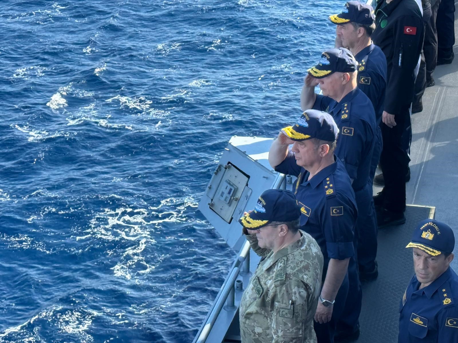 Doğu Akdeniz, Karadeniz ve Ege'de içre edilen DENİZKURDU-I/2025 Tatbikatının Seçkin Gözlemci Günü'nde Genelkurmay Başkanı Orgeneral Selçuk Bayraktaroğlu, Deniz Kuvvetleri Komutanı Oramiral Ercüment Tatlıoğlu ve ROKETSAN Genel Müdürü Murat İkinci tatbikatı TCG Anadolu gemisinden takip etti.