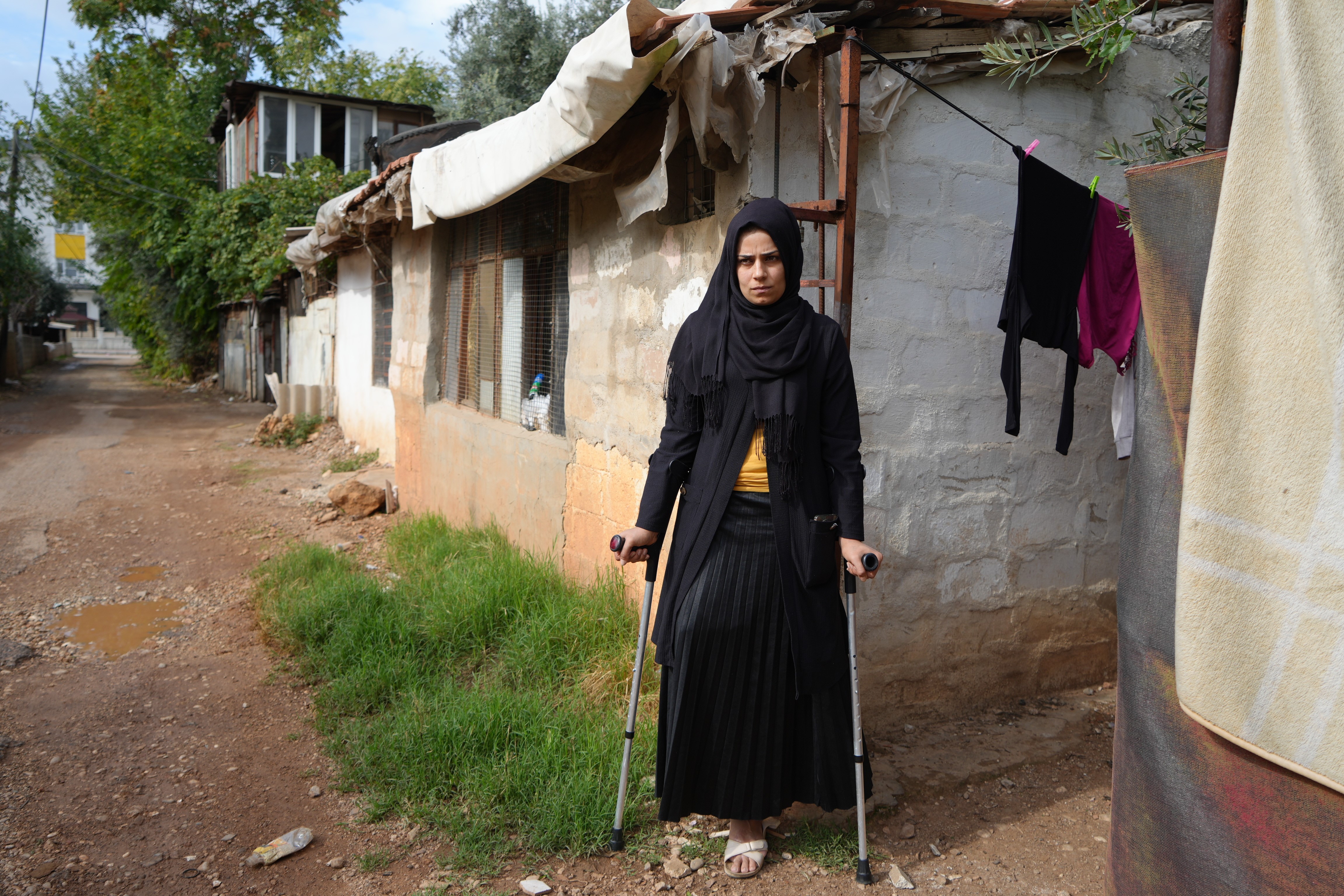 "Depreme yakalandım, yaralandım. Sağ tarafımdan sakat kaldım. Bir süre sonra eşimle ayrıldık. Durumum nedeniyle kızımı aldı ve orayı terk edip buraya geldim. Hayat burada çok zor. Çünkü yalnızım. Her şey çok zor. İş yapmak istesem bile sağlık durumum el vermiyor. Burada tek başımayım ve kimsem yok."