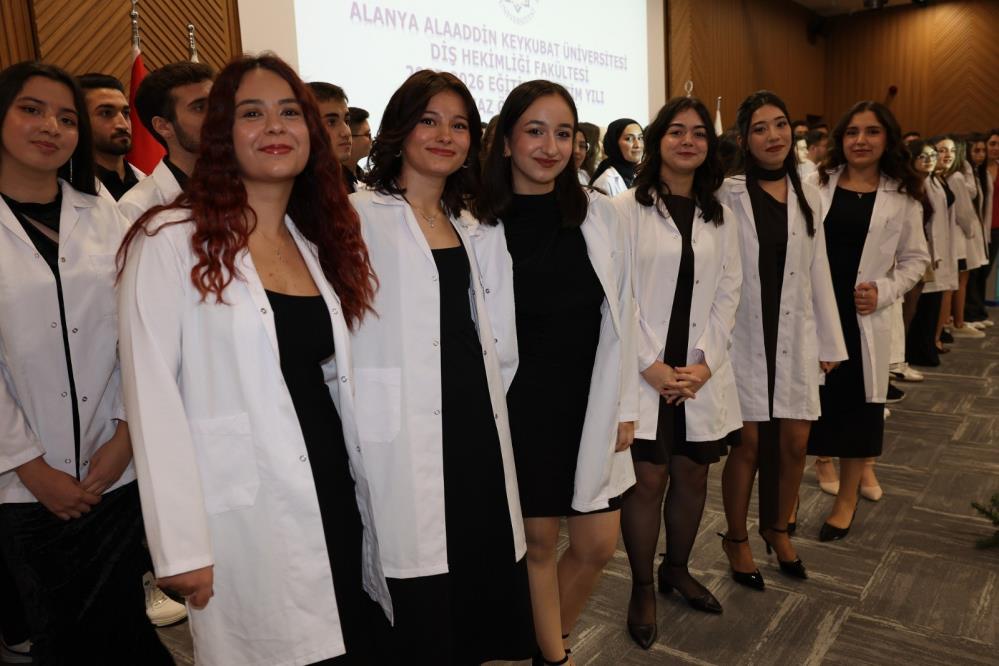 Alanya Alaaddin Keykubat Üniversitesinde (ALKÜ) yeni dönemin başlamasının ardından ALKÜ'lü öğrenciler, mesleklerinde ilk adım atmanın heyecanını yaşamaya devam ediyor. Bu kapsamda ALKÜ Diş Hekimliği Fakültesi tarafından bu yıl fakülteye başlayan öğrencilere 2025-2026 Eğitim-Öğretim Yılı Beyaz Önlük Giyme Töreni düzenlendi.