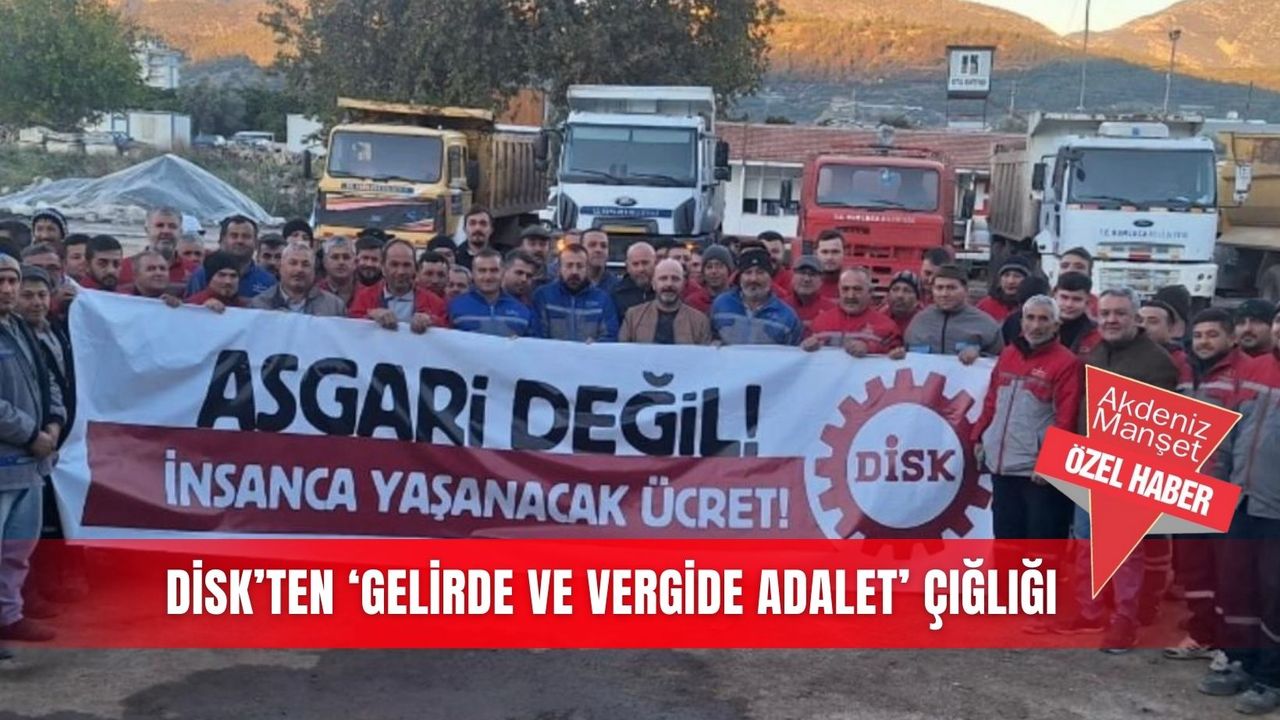 DİSK Akdeniz Bölge Temsilcisi ve Genel-İş Antalya Şube Başkanı Vedat Küçük, “Gelirde adalet, vergide adalet, ülkede adalet” diyerek tüm işçileri mücadeleye çağırdı. Hayat pahalılığı karşısında işçi sınıfının nefes alamaz hale geldiğini vurgulayan Vedat Küçük, bölüşüm sorununa dikkat çekerek, “Hayat pahalılığı karşısında ücretlerimiz eriyor, alım gücümüz her gün daha da düşüyor. Ücret artışları, TÜİK’in açıkladığı ama kimsenin inanmadığı resmi enflasyonun bile altında kalıyor. Bugün ülkemizin en büyük sorunu bölüşüm sorunu. Bu düzenin bütün çarkları zengini daha zengin, yoksulu daha yoksul yapmak için dönüyor. Bizler örgütlü işçiler, örgütleniyoruz, mücadele ediyoruz, haklarımızı söke söke alıyoruz. Ama ne oluyor. Hayat pahalılığı karşısında ücretlerimiz eriyor, alım gücümüz her gün daha da düşüyor” diye konuştu.