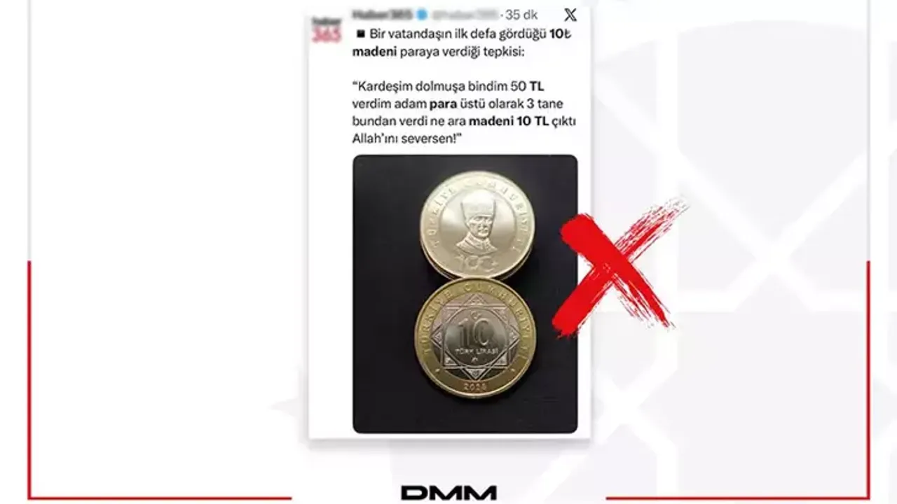 DMM'nin sanal medya hesabı üzerinden yapılan açıklamada, "Bazı sosyal medya hesaplarından, ‘10 TL değerinde madeni para olduğu' yönünde paylaşılan görseller gerçek değildir. Tedavüle çıkarılmış 10 TL değerinde herhangi bir madeni para bulunmamaktadır. Kamuoyunun, yapay zeka destekli yanıltıcı paylaşımlara itibar etmemesi önemle rica olunur" ifadelerine yer verildi.