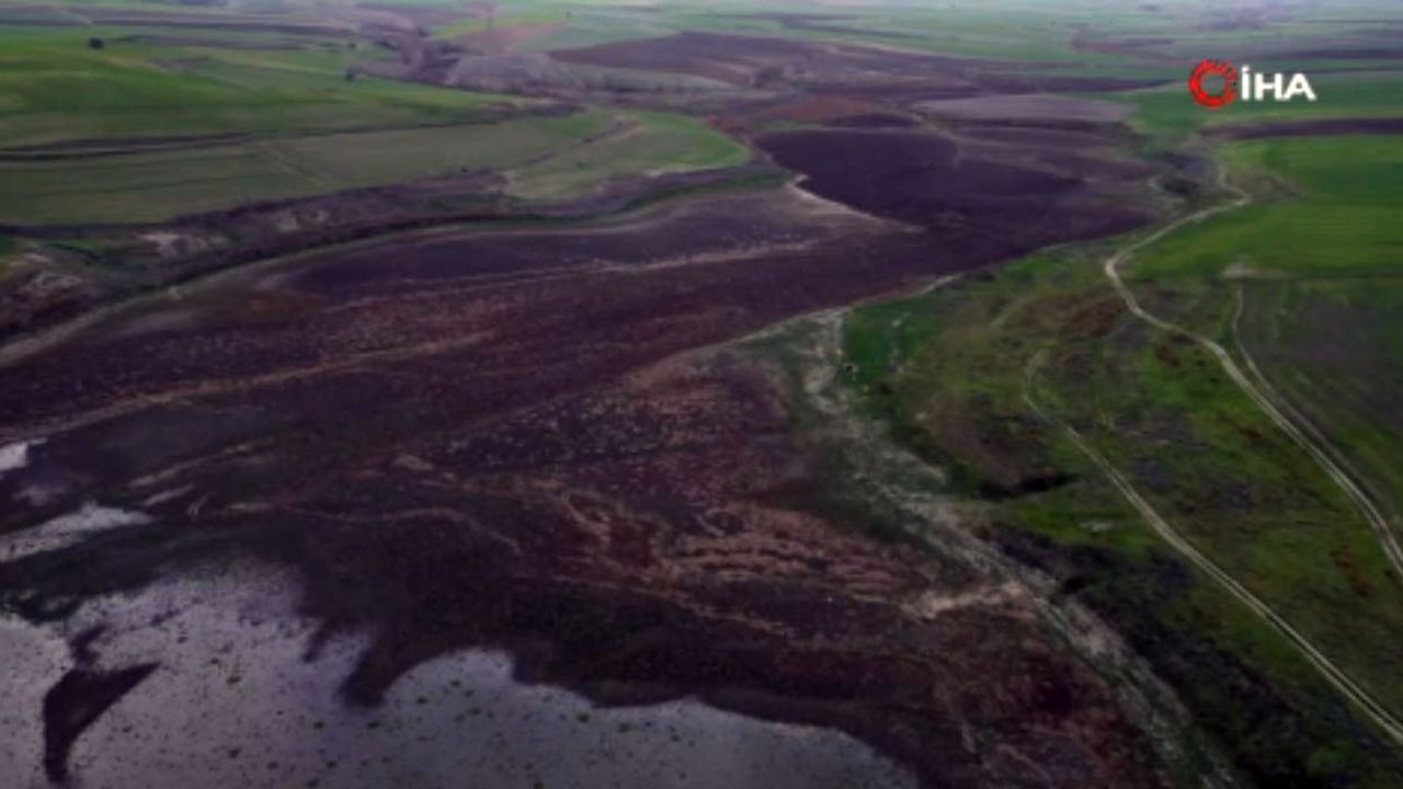 Türkiye'nin doğu illerinde yoğun kar yağışı etkili olurken Tekirdağ'da ise yağışların yetersiz olmasından dolayı kuraklık günbegün yüzünü göstermeye devam ediyor. Bölgede etkili olan kuraklık nedeniyle göletteki doluluk oranı yüzde birin altına gerilerken, su seviyesinin düşmesiyle birlikte bazı alanlarda çamur tabakaları, otlanmalar ve küçük adacıklar oluştu. Göletten çekilen drone görüntüsü, kuraklığın ulaştığı boyutu gözler önüne serdi.