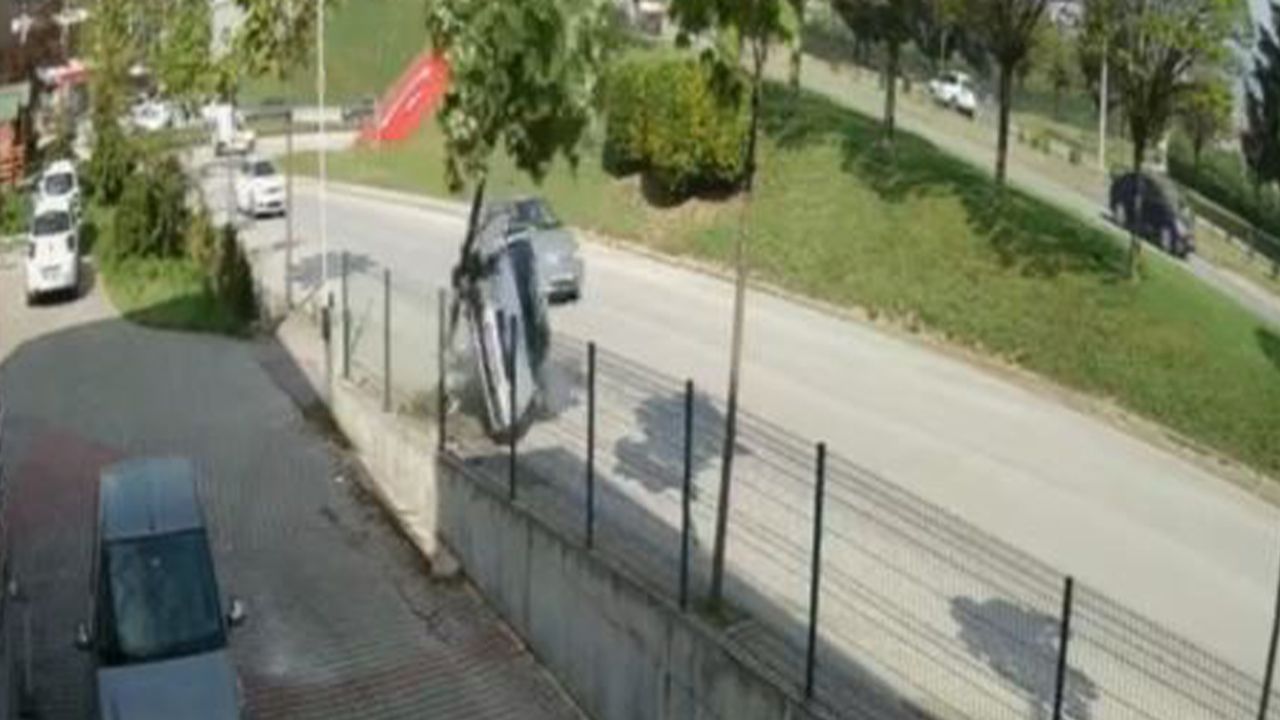 Bolu’da rampa yukarı çıkarken kontrolden çıkarak yan yatan otomobilin, güvenlik kamera görüntüleri ortaya çıktı. Yavaş geldiği görülen aracın yol kenarındaki ağaca çarparak devrildiği görüldü.