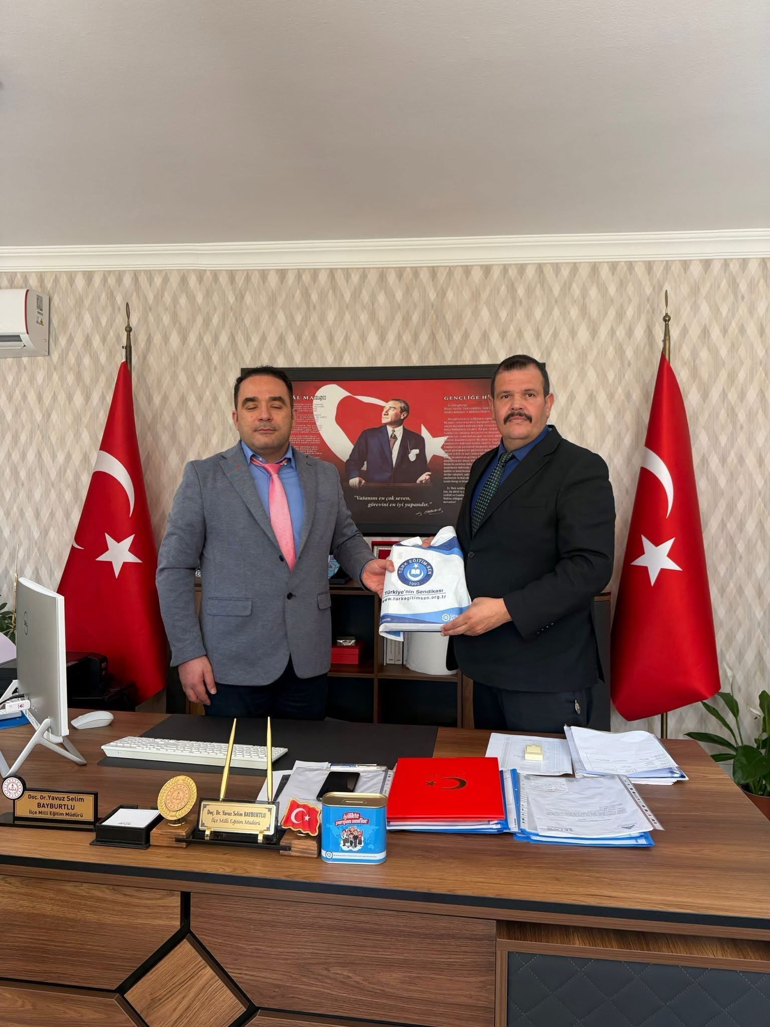 Eğitim camiasıyla istişare kültürünü güçlendirmek amacıyla gerçekleştirilen görüşmede, ilçedeki eğitim faaliyetleri ve çalışanların talepleri masaya yatırıldı. Ziyaretin ardından açıklamalarda bulunan Şube Başkanı Erhan Çatal, eğitim çalışanlarının haklarını her platformda savunmaya devam edeceklerini belirterek, “Türk Eğitim Sen Antalya teşkilatları olarak eğitim camiamızla istişare ve iş birliğimizi güçlendirmeye devam ediyoruz. Döşemealtı İlçe Milli Eğitim Müdürümüz Sayın Doç. Dr. Yavuz Selim Bayburtlu ile gerçekleştirdiğimiz görüşmede; ilçemizdeki eğitim-öğretim faaliyetleri, eğitim çalışanlarımızın talep ve beklentileri ile kurumlarımızın mevcut durumu üzerine verimli bir istişare gerçekleştirdik. Eğitimde kaliteyi artırma, çalışma barışını güçlendirme ve meslektaşlarımızın haklarını koruma noktasında karşılıklı görüş alışverişinde bulunduk” dedi. Çatal, misafirperverliklerinden dolayı İlçe Milli Eğitim Müdürü Bayburtlu’ya teşekkür ederek, "Eğitim çalışanının sesi, milli değerlerin teminatı olmaya kararlılıkla devam edeceğiz" diye konuştu.