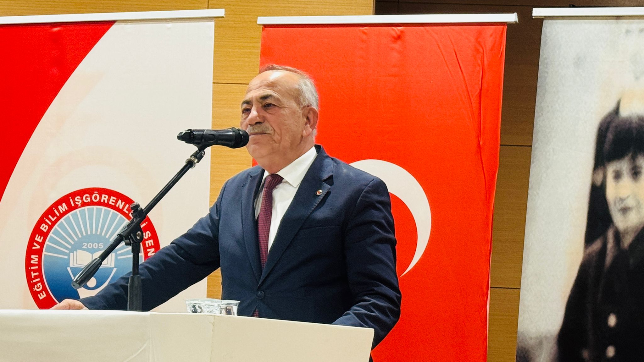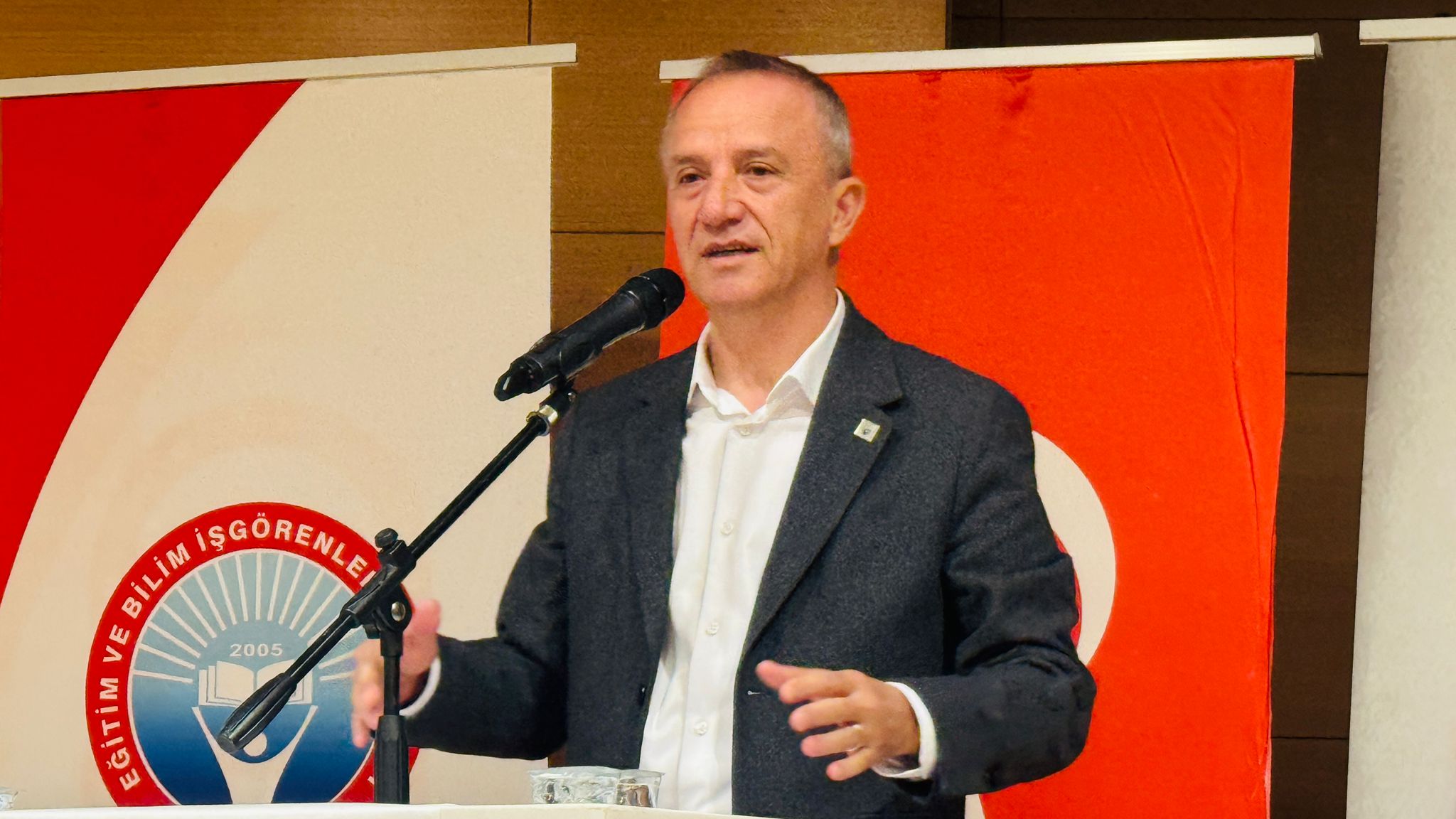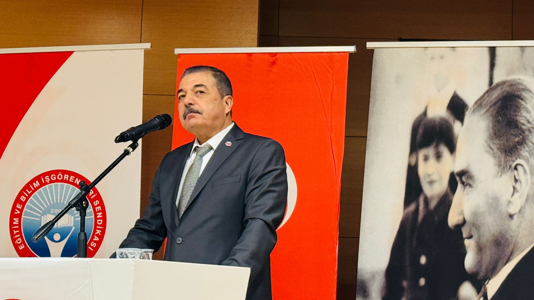 Kongreleri sendikaların ‘Bayramı ve düğünü’ olarak niteleyen Türk İş Antalya İl Başkanı Yol İş Sendikası 1 No’lu Şube Başkanı Cemil Ünal, "Biz konfederasyon olarak hiçbir zaman 'memur fazla alıyor' demedik, her zaman 'işçi az alıyor' dedik. Çünkü emekle, alın teriyle sulanan çiçek güzel kokar. Sınıf bilinci her şeyden önce gelir. Atanmayan öğretmenlerimizin mücadelesine de sonuna kadar katılıyoruz. 2010 yılında Antalya’da başlattığımız taşeronla mücadeleyi Avrupa İnsan Hakları Mahkemesi’ne kadar taşıyıp kazandık. Ancak bugün taşeronlaşma ne yazık ki iki katına çıktı. Okullardaki personelden sağlık sektörüne kadar her yerde emek sömürüsü var. Buna hep beraber, meydanlarda 'dur' diyeceğiz. En kötü sendika bile sendikasızlıktan iyidir. Eğitim-İş’in başarısıyla mutlu oluyoruz, her zaman yanınızdayız” dedi. Cemil Ünal, örgütlü mücadelenin ve birliğin her türlü baskıya karşı en büyük özgürlük olduğunu belirterek konuşmasını tamamladı. Atatürkçü Düşünce Derneği (ADD) Antalya Şube Başkanı İbrahim Daş, eğitim emekçilerinin ve sendikaların Cumhuriyet değerlerini savunmada tarihsel bir sorumluluğu olduğunu vurguladı. Daş, iş güvencesini zayıflatan düzenlemelere ve kayyum–yolsuzluk söylemleri üzerinden yürütülen sürecin üniter yapıyı tehdit ettiğini belirterek, “Bu süreçte tarafsız kalmak mümkün değil. Emekten ve Cumhuriyet’ten yana ortak mücadele zorunludur” diyerek konuşmasını tamamladı.
