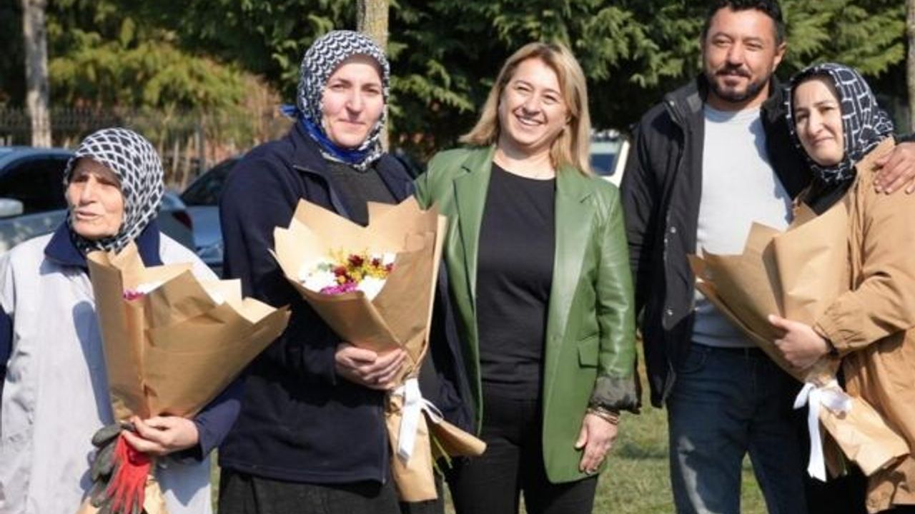 Millet Bahçesi'nde yeşil alan bakımı yapan Park ve Bahçeler Müdürlüğü çalışanları, LED ekranda eşlerinin mesajlarını görünce şaşırdılar. Duygusal ve içten sözlerle karşılaşan kadınların ilk tepkisi, mutluluk gözyaşları oldu. Sürpriz bununla da bitmedi. Ellerinde çiçeklerle eşlerinin karşısına çıkan erkekler, onları tek tek tebrik ederek sevgilerini dile getirdi. Kadınlar, hem eşlerine hem de Düzce Belediyesi'ne bu unutulmaz anı yaşattıkları için teşekkür etti.
