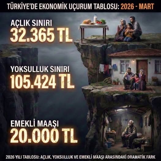 Türkiye Emekliler Derneği (TÜED) Antalya Şube Başkanı İbrahim Tezcan, Mart 2026 itibarıyla güncellenen açlık ve yoksulluk sınırı rakamlarını değerlendirerek emekli maaşlarının hayat pahalılığı karşısında tamamen eridiğini vurguladı. Mevcut tabloyu bir "ekonomik uçurum" olarak nitelendiren Tezcan, en düşük emekli aylığının temel gıda ihtiyaçlarını dahi karşılamaktan uzak olduğunu belirtti. Paylaşılan güncel verilere göre, dört kişilik bir ailenin sağlıklı beslenebilmesi için gereken açlık sınırı 32.365 TL'ye yükselirken, yoksulluk sınırı ise 100.000 TL barajını aşmış durumda. Bu rakamlar karşısında 20.000 TL düzeyindeki en düşük emekli aylığının yetersizliğine dikkat çeken Tezcan, “Bugün gelinen noktada emekli aylığı, yoksulluk sınırının sadece %19'unu karşılayabiliyor. Bir emeklinin aldığı maaş, açlık sınırının bile yaklaşık 12 bin lira gerisindedir. Emeklimiz sadece yoksul değil, maalesef açlık riskiyle karşı karşıya bırakılmıştır. Bu dramatik farkın sürdürülebilir bir yanı kalmamıştır” diye konuştu.