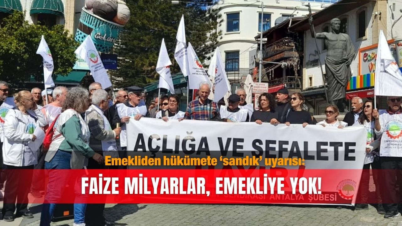 Tüm Emekliler Sendikası Antalya Şubesi üyeleri, emeklilerin derinleşen yoksulluk ve ekonomik kriz karşısındaki isyanını dile getirmek amacıyla Attalos Meydanı’nda basın açıklaması düzenledi. Şube Sekreteri Ferzan Sarsılmaz tarafından okunan açıklamada, hükümetin ekonomi politikaları sert bir dille eleştirilirken, emeklilerin "kara düzeni" değiştireceği vurgulandı. Açıklamasında SGK bütçesindeki çelişkilere dikkat çeken Ferzan Sarsılmaz, geçtiğimiz yıl emekliler için ayrılan devasa bütçenin doğru kullanılmadığını savundu. Sarsılmaz, "2023 bütçesinde toplam 3,5 trilyon lira harcama planlanmışken, yıl sonunda bu rakam 5 trilyon 54 milyar liraya ulaşmıştır. Ancak bu devasa artışa rağmen bütçenin 451 milyar lirası emeklilere harcanmamıştır. Bu tablo açıktır; emeklinin hakkı gasp edilmiştir" dedi. Hükümetin "kaynak yok" savunmasını inandırıcı bulmadıklarını belirten Sarsılmaz, şu ifadeleri kullandı: "Gabar'da petrol dediler, olmadı; şimdi 'savaş var' bahanesine sığınıyorlar. Faize, sermayeye, köprü ve şehir hastanelerini işleten şirketlere milyarlarca lira kaynak aktaranlar, konu emekliye gelince 'bütçe imkanları sınırlı' diyor. Biz bu adaletsizliği kabul etmiyoruz."