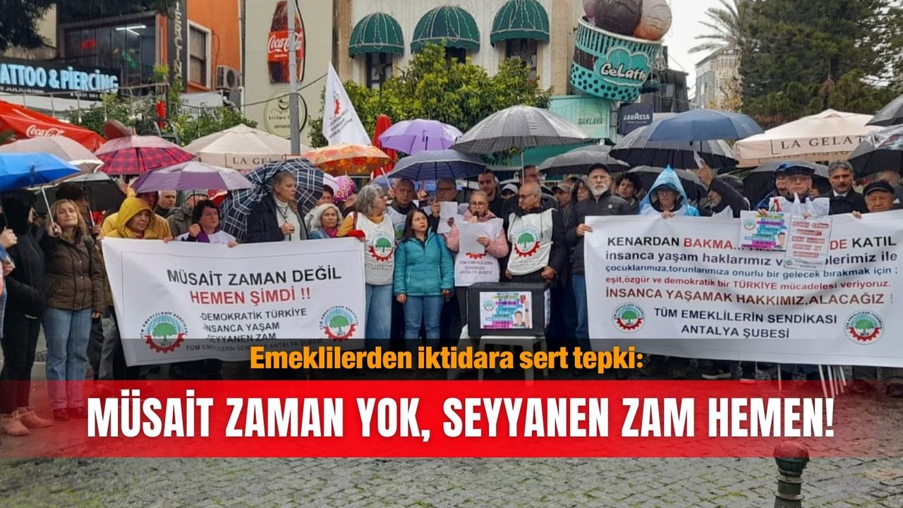 Tüm Emeklilerin Sendikası Antalya Şubesi üyeleri, Attalos Meydanı’nda bir araya gelerek iktidarın politikalarına yönelik basın açıklamasında bulundu. Sendika adına açıklama yapan Bilge Torosoğlu, emeklilerin içinde bulunduğu ekonomik sefalete ve iktidarın ekonomi politikalarına sert tepki gösterdi. Torosoğlu, emekliye yönelik tutumu “bilinçli bir saldırı" olarak nitelendirerek, derhal 20 bin TL seyyanen zam talep etti. Açıklamasına iktidarın emekliyi görmezden gelen tavrını eleştirerek başlayan Bilge Torosoğlu, emeklilerin "ekonomik zorunluluk" adı altında açlığa mahkum edildiğini savundu. AKP-MHP blokunun yarattığı düzeni "sefalet düzeni" olarak tanımlayan Torosoğlu, şu ifadeleri kullandı: "Bugün emeklilerin içine sürüklendiği bu tablo bir tercih meselesidir. Emekliye gelince ‘kaynak yok’ diyenler; sermayeye, faizci düzene ve sarayın israfına kaynak bulmakta bir saniye bile zorlanmıyor. Emekliyi ‘yük’ görenler bilsin ki; asıl yük halkın alın terini yandaşa peşkeş çeken bu harami düzendir."