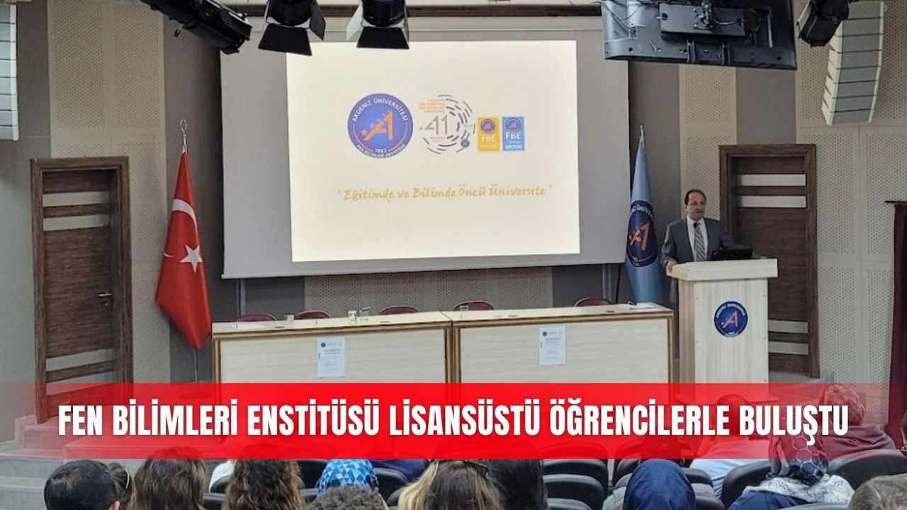 Akdeniz Üniversitesi Fen Bilimleri Enstitüsü, 2025–2026 Akademik Yılı kapsamında lisansüstü programlara yeni kayıt yaptıran öğrencilerle mevcut öğrencileri ve öğretim üyelerini bir araya getiren 'Lisansüstü Öğrenci–Öğretim Üyesi Buluşması' etkinliğini düzenledi. Açılış konuşmasını yapan Fen Bilimleri Enstitüsü Müdürü Prof. Dr. Orhan Özçatalbaş, Rektör Prof. Dr. Özlenen Özkan tarafından ortaya konan 'Araştırma Üniversitesi Olmak' vizyonuna vurgu yaptı.