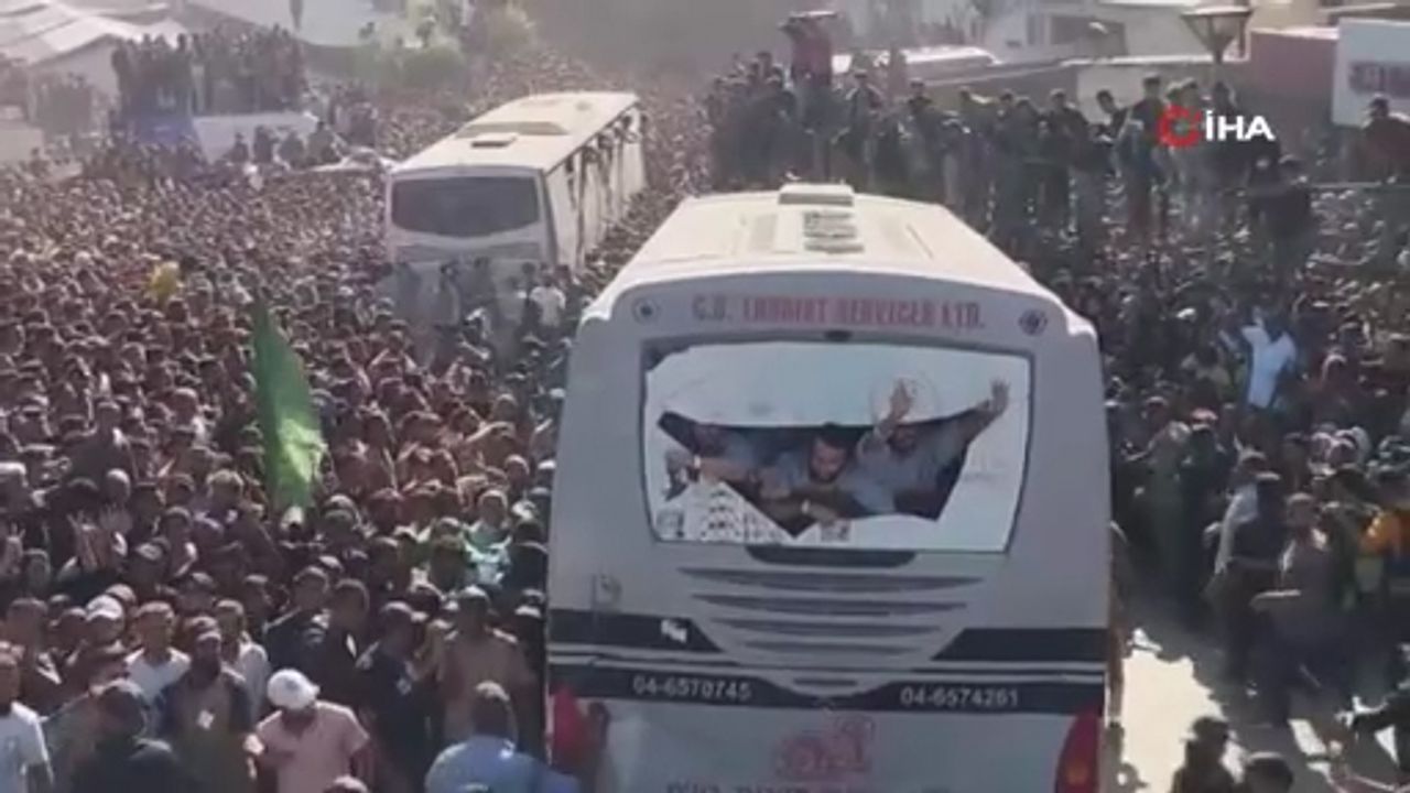 İsrail ile Hamas arasındaki varılan ateşkes anlaşması kapsamında esir takası yapıldı. Hamas'ın 20 canlı esiri serbest bırakmasının ardından İsrail de bin 968 Filistinli mahkumu serbest bıraktı. Bin 716 Filistinli mahkumu taşıyan otobüsler, Kerem Şalom Sınır Kapısı'ndan geçerek Gazze Şeridi’ne giriş yaptı. Mahkumlar, Han Yunus’taki Nasser Hastanesi’ne sevk edildi. Mahkumların yakınları sevdiklerini coşkuyla karşılarken, binlerce kişi gözyaşlarına boğuldu. Filistinli mahkumlardan 250'si ise Batı Şeria, Kudüs ve diğer ülkelere nakledildi.