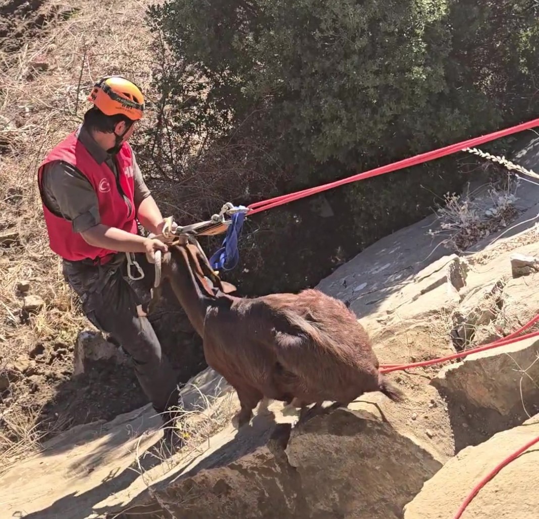 Korkuteli ilçesi Güzle köyü dağlık alanda sahibi tarafından otlatıldığı sırada bir keçi kaya oyuğuna düştü. Sahiplerinin keçiyi kendi imkanlarıyla sıkıştığı yerden çıkarma çabaları sonuç vermeyince, durum arama kurtarma birimlerine bildirildi. İhbarla Antalya’dan yola çıkan ve Güzle köyüne gelen arama kurtarma ekibi, keçiyi bulunduğu yerden kurtarmak için harekete geçti. İple erişim teknikleri kullanılarak keçiye ulaşan arama kurtarma ekibi yaklaşık 2 saatlik çalışma ile mahsur kaldığı yerden çıkartarak sahibine teslim etti.