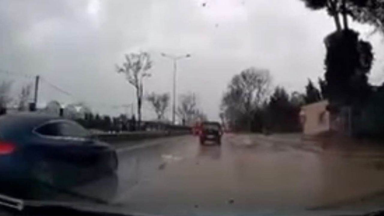 Mudanya yolunda seyreden sürücü kendisini uçan parçalardan güçlükle korudu. Aracın arka kamerasın yansıyan görüntülerde ana yolda kimsenin bulunmadığı bir sırada fırtınanın etkisiyle bir ağaç yola devrildi. Şans eseri olayda kimse yaralanmadı.
