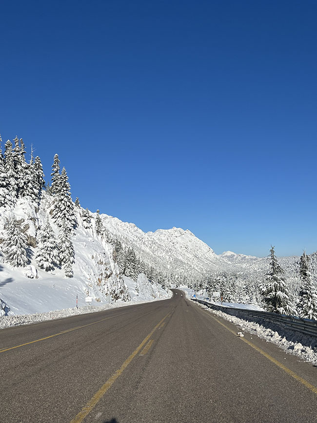 Antalya- Konya kara yolunun Akseki'ye bağlı Alacabel Geçidi'nde bir süredir etkili olan kar yağışı bölgeyi beyaz örtüyle kapladı. Bugün yağışın yerini güneşli havaya bıraktığı bölgede kar kalınlığı yer yer 15 santimetreyi geçti. Çam ve sedir ağaçlarının dalları üzerinde ve çevredeki kar birikintileri, açık ve güneşli havayla birleşince hayran bırakan görüntüler oluşturdu. Öte yandan Antalya- Konya yolundaki ulaşımda herhangi bir olumsuzluk yaşanmadığı öğrenildi.