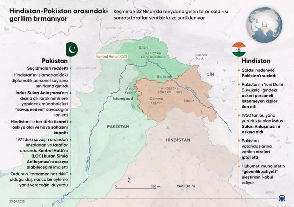 Keşmir'de 22 Nisan'da gerçekleşen saldırı sonucunda Hindistan ve Pakistan arasındaki gerilim giderek arttı. İki taraf da birbirini suçluyor.