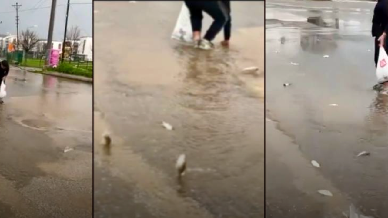 O anlar, bölge sakinlerinden tarafından cep telefonu kamerasıyla saniye saniye kaydedildi. Görüntülerde, su taşkınıyla birlikte yola savrulan balıklar ve vatandaşların kurtarma operasyonu net bir şekilde görüldü. Yağışın dinmesi ve suların çekilmesiyle bölgede hayat normale dönerken, yaşanan bu ilginç olay objektiflere bu şekilde yansıdı.
