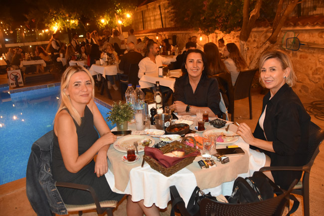 Gecenin ilerleyen saatlerinde sahneden masaya gelen sazların ritmiyle coşan Melike Ügümü, Beliz Cinkaya ve Serap Tarakçı, şarkılara hep bir ağızdan eşlik ettiler. Masalarında oryantal dansöz oynatarak eğlencenin dozunu zirveye taşıyan güzeller, Meyhanet'in o gece en çok eğlenen ve ilgi odağı olan grubu oldu.