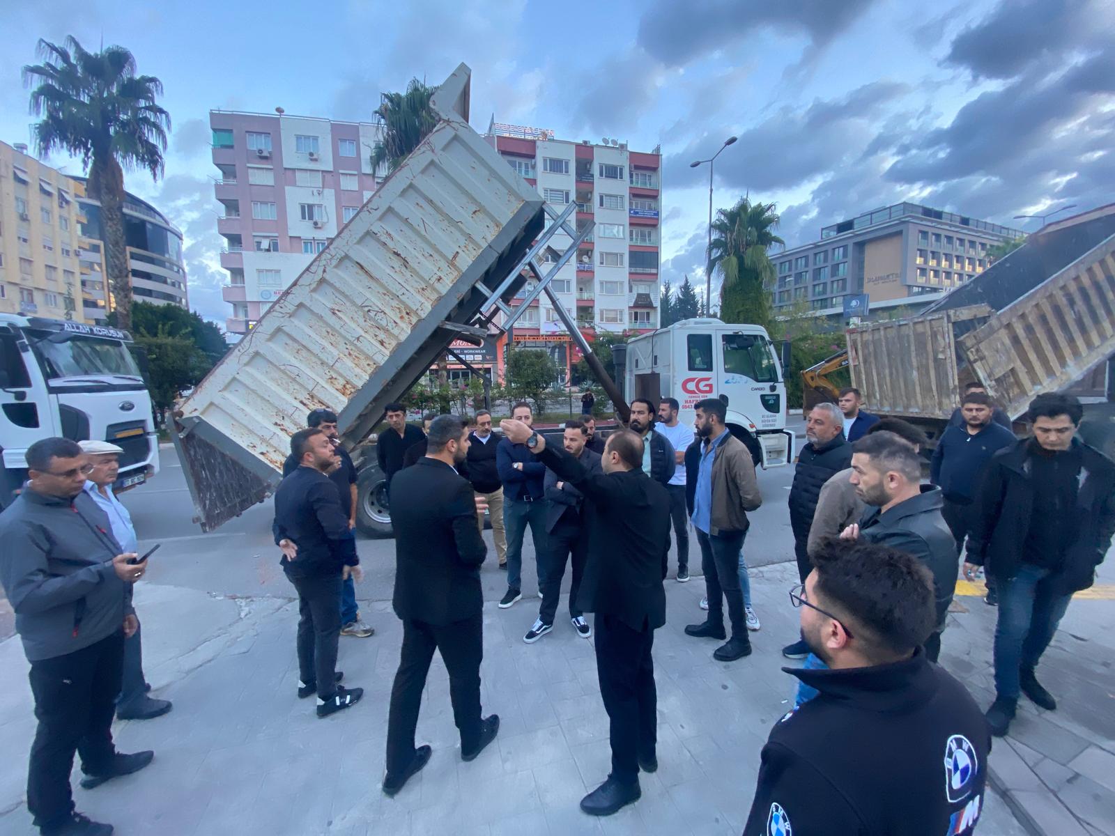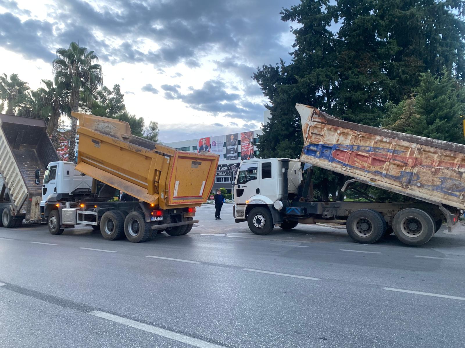 Antalya Büyükşehir Belediyesi önünde sabah saatlerinde toplanan hafriyat kamyonu şoförleri, kendilerine uygulanan para cezalarını protesto etti. Sabah 07.00 sularında başlayan eylemde kamyonlar belediye binasının giriş ve çıkışlarına park edilerek bir süre ulaşım durduruldu.