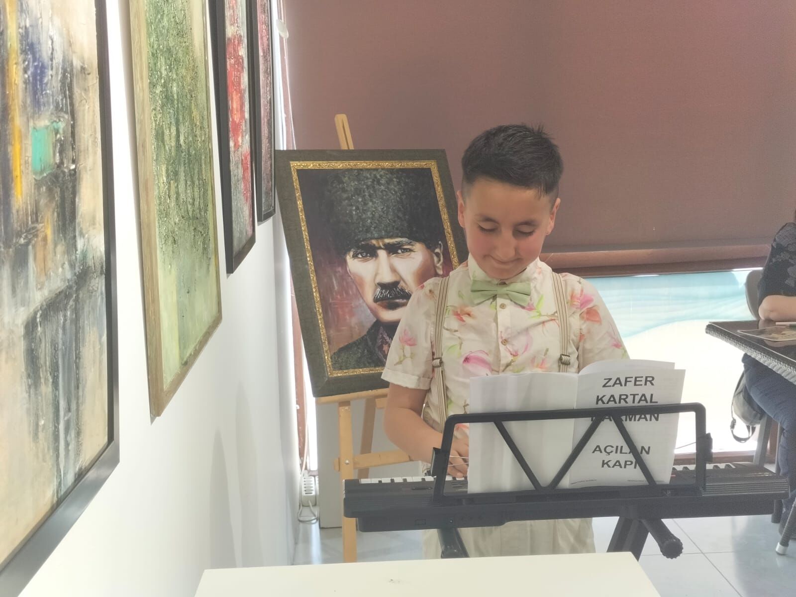 Programın ilk bölümünde Narman, kendi yazıp yönettiği ve başrolünü üstlendiği ‘Açılan Kapı’ isimli tek kişilik tiyatro oyununu sergiledi. 23 Nisan’ın anlam ve önemini bir çocuğun gözünden, samimi ve etkileyici bir dille aktaran genç oyuncu, 14 dakikalık performansı boyunca izleyenleri hem duygulandırdı hem de büyük alkış topladı. Tiyatro gösterisinin ardından moderatörlüğünü Ayşe Kural’ın üstlendiği bir kitap söyleşisi gerçekleştirildi. Zafer Kartal Narman, kaleme aldığı ‘Mavi Atlı Prens’den Masallar’ isimli kitabının yazım sürecini ve hayallerini dinleyicilerle paylaştı. Söyleşide küçük yazarın özgüveni ve sanata olan tutkusu dikkat çekti.