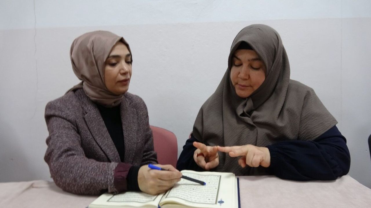 Kur’an-ı Kerim öğrenmek için büyük azim ve gayret gösteren işitme engelli kadınların Kur’an sevgisi görenleri imrendiriyor. İşaret diliyle Kur’an-ı Kerim öğrenmenin sevincini yaşayan kadınlar, sessiz dünyalarını Kur’an-ı Kerimle anlamlandırıyor.