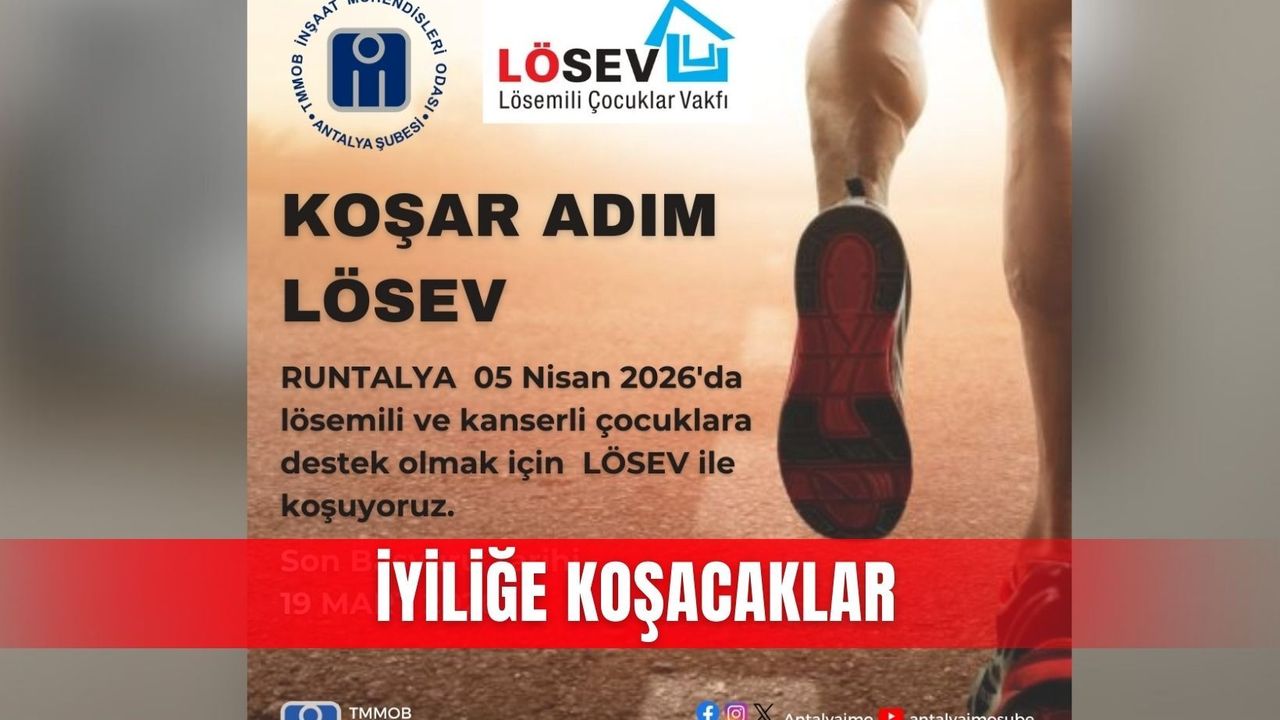 Toplumsal duyarlılık projelerine bir yenisini ekleyen İMO Antalya Şubesi, Runtalya 2026 Maratonu kapsamında LÖSEV ile güçlerini birleştiriyor. Lösemili ve kanserle mücadele eden çocukların tedavi ve ihtiyaçlarına destek sağlamayı hedefleyen şube, maraton boyunca farkındalık yaratmayı amaçlıyor. Bu yılki koşuda mühendisler, mesleki sorumluluklarına dikkat çeken "İnşaat Mühendisinizle Depremden Önce Tanışın" mesajını göğüslerinde taşıyacak. Hem toplum sağlığına hem de güvenli yapılaşmaya vurgu yapılacak olan etkinlikte, toplanan bağışlar doğrudan LÖSEV’e aktarılacak.
