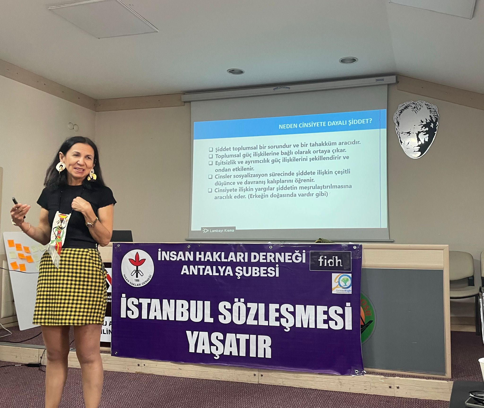 İnsan Hakları Derneği (İHD) Antalya Şubesi, 25 Kasım Kadına Yönelik Şiddetle Uluslararası Mücadele Günü kapsamında bugün önemli bir söyleşi gerçekleştirdi. Psikolog Emine Göncü Anadol’un sunumuyla düzenlenen etkinlikte toplumsal cinsiyet normları, şiddet türleri ve mücadele yöntemleri farklı yönleriyle ele alındı. Katılımcılar kendi deneyimlerini paylaşarak tartışmaya katkı sundu. Söyleşinin açılış konuşmasını, İHD Antalya Şubesi Kadın Komisyonu ve yönetim kurulu üyesi Saadet Öztürk yaptı. Öztürk, kadına yönelik şiddetle mücadelenin insan hakları mücadelesinin ayrılmaz bir parçası olduğunu vurgulayarak, “Kadınlar yaşamın her alanında eşitlik mücadelesi veriyor. Bizler de bu mücadelenin hem öznesi hem takipçisi olmaya devam edeceğiz” dedi.