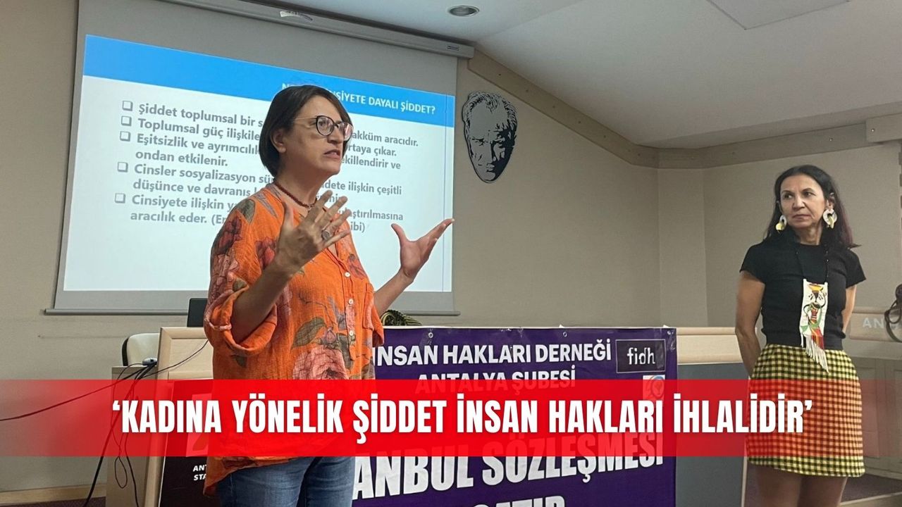 Psikolog Emine Göncü Anadol sunumunda, toplumsal düzen üzerinde egemenlik kuran erkek zihniyetinin kadınları sosyal yaşamın birçok alanından dışlamaya çalıştığını belirtti. Kadına yönelik şiddetin temel nedeninin toplumsal cinsiyet eşitsizliği olduğunun altını çizen Anadol, şiddetin sadece fiziksel değil; psikolojik, ekonomik, dijital ve ısrarlı takip gibi çok boyutlu biçimlerde yaşandığını anlattı. Anadol, şiddetle mücadelenin gündelik yaşam pratikleri içinde başlaması gerektiğini ifade ederek, “Kadınların maruz kaldığı şiddeti, onların yaşamsal ve psikolojik gerçekliği üzerinden değerlendirmek gerekir. Mücadele yöntemleri de ancak bu gerçeği odağa aldığımızda etkili olabilir” diye konuştu. Etkinlik, katılımcıların soru ve katkılarıyla interaktif bir şekilde devam etti. İHD Antalya Şubesi, 25 Kasım kapsamında kadına yönelik şiddete dikkat çekmeye ve farkındalık çalışmalarını sürdürmeye devam edeceğini duyurdu.