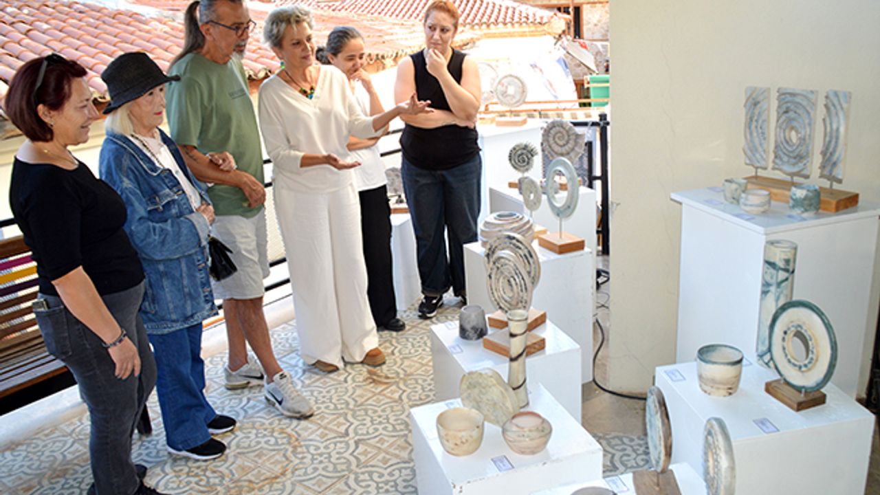 Sanatçı Deniz Çeki, Kaleiçi'nde sergilenen eserlerini hayranlıkla inceleyen sanatseverlere kendisine özgü teknikleri hakkında bilgi verdi. Çamura şekil vererek sanat eserlerine dönüştüren Çeki, "Pişirimlerimde doğa ile malzeme arasında kurulan ilişkiyi arıyorum. Ateşin yönlendirdiği, oksitlerin dönüştürdüğü yüzeylerde kontrolün sınırlarını bırakıyor, tesadüfün ve doğallığın izlerini kabul ediyorum. Doğadan gelen malzemelerle de buluşturduğum seramik 1000 derece sıcaklıktaki fırında kendi hikâyesini yazıyor. Çalışmalar, sanatçının elinden çıktığı kadar, ateşin ve doğanın ortak üretimidir" dedi.