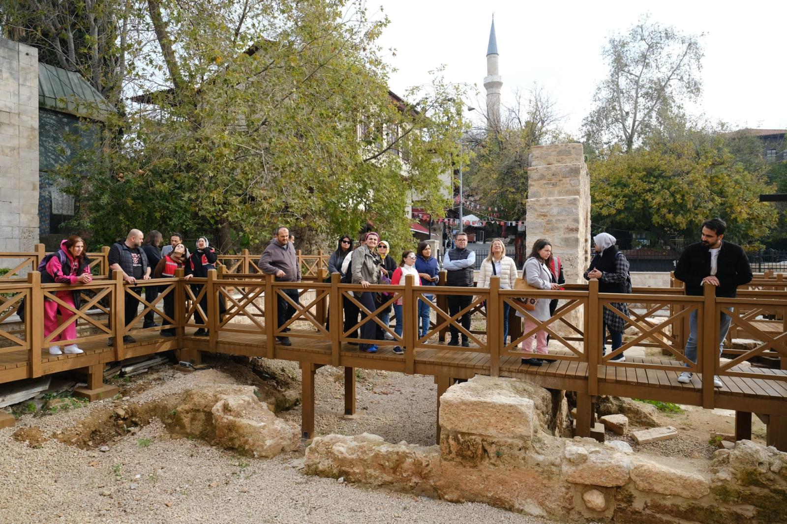 Eğitim programı, Kaleiçi’nde bulunan Mevlevihane’de gerçekleştirilen semazen gösterisi ile başladı. Manevi atmosferiyle katılımcılara tarihsel ve kültürel bir yolculuk yaşatan gösterinin ardından, Vakıflar Bölge Müdürlüğü’nün Kaleiçi’nde yer alan 14 tarihi vakıf eseri, uzman rehberler eşliğinde tanıtıldı. Tanıtımlar sırasında eserlerin mimari özellikleri, tarihsel süreçleri, vakıf sistemi içerisindeki işlevleri, toplumsal hayata katkıları ayrıntılı şekilde ele alındı. Ayrıca program boyunca Antalya Vakıflar Bölge Müdürlüğü’nün yürüttüğü restorasyon çalışmaları, sosyal projeler ve vakıf kültürünü yaşatmaya yönelik faaliyetler hakkında da bilgilendirme yapıldı.
