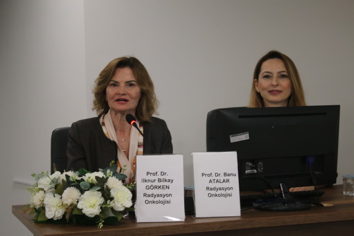 Programın ilk sunumunu gerçekleştiren Prof. Dr. Vildan Kaya, ‘Kanser Nedenleri ve Tedavide Radyoterapinin Rolü’ başlıklı konuşmasında kanserin günümüzde önemli bir halk sağlığı sorunu haline geldiğini vurguladı. Kanserin, hücrelerin kontrolsüz ve sürekli çoğalması sonucu ortaya çıkan bir hastalık olduğunu belirten Prof. Dr. Kaya, tedavi edilmediği takdirde diğer organlara yayılabildiğini ifade etti. Kanser risk faktörlerinin değiştirilebilir ve değiştirilemeyen olmak üzere iki gruba ayrıldığını söyleyen Kaya, değiştirilebilir risk faktörleri arasında sigara, alkol, düzensiz ve sağlıksız beslenme, obezite, güneşin zararlı UV ışınları ve çevresel kirliliğin yer aldığını dile getirdi. Enfeksiyonların da son dönemde önemli bir risk faktörü haline geldiğini belirten Kaya, yaş, cinsiyet, ırk ve genetik faktörlerin ise değiştirilemeyen riskler arasında bulunduğunu söyledi. Uzun süre geçmeyen öksürük ve açıklanamayan kilo kaybının önemli belirtiler olduğuna dikkat çeken Kaya, erken tanının hayati önem taşıdığını vurguladı. KETEM’lerin erken tanı konusunda başarılı çalışmalar yürüttüğünü ifade eden Prof. Dr. Kaya, farkındalık aylarının bu konuda önemli katkı sağladığını belirterek, erken tanının tedavi başarısını artırdığını ve yaşam süresini uzattığını söyledi. Modern radyoterapinin, tümörde maksimum etki yaratırken normal dokuları koruyabildiğini dile getiren Kaya, güçlü bir ekip ve doğru yöntemlerle başarılı sonuçlar elde edilebildiğini kaydetti.