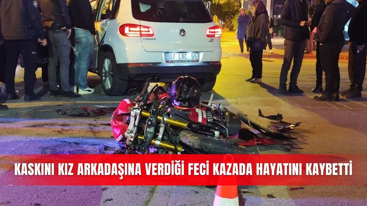 Kaza; Manavgat ilçesi Demokrasi Bulvarı'nda meydana geldi. Edinilen bilgiye göre, çevreyolu istikametine seyir halindeki Kadir Akbulut'un kullandığı 07 CEF 424 plakalı motosiklet, kavşak sisteminde Mithatpaşa Caddesine gitmekte olan Mehmet T. I.'nın kullandığı 07 LNC 55 plakalı otomobil ile çarpıştı. Kazayı gören vatandaşların 112 Acil Çağrı Merkezi'ne ihbarı ile olay yerine çok sayıda sağlık ve polis ekibi sevk edildi. Feci kazada motosiklet sürücüsü Kadir Akbulut, motosiklette yolcu olarak bulunan Melike D., ile otomobil sürücüsü Mehmet T. I. ve otomobilde yolcu olarak bulunan İsmehan I. yaralandı.