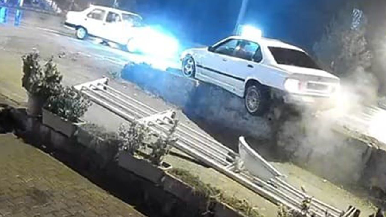 Olay, Karabük - Safranbolu Karayolu 5 bin evler köprü mevkiinde medyana geldi. Havanın yağışlı olması nedeniyle sürücüsünün direksiyon hakimiyetini kaybettiği otomobil, aşırı hız sonucu yolda çıkarak önce kaldırma çıktı, ardından ise korkulukları devirerek kaldırımda askıda kaldı. Bu sırada aracını askıdan çıkaramayan sürücü vatandaşların şaşkın bakışları altında aracından inerek hızla olay yerinden uzaklaştı. Yaşananlar ise iş yerinin kamerasına saniye saniye yansıdı.