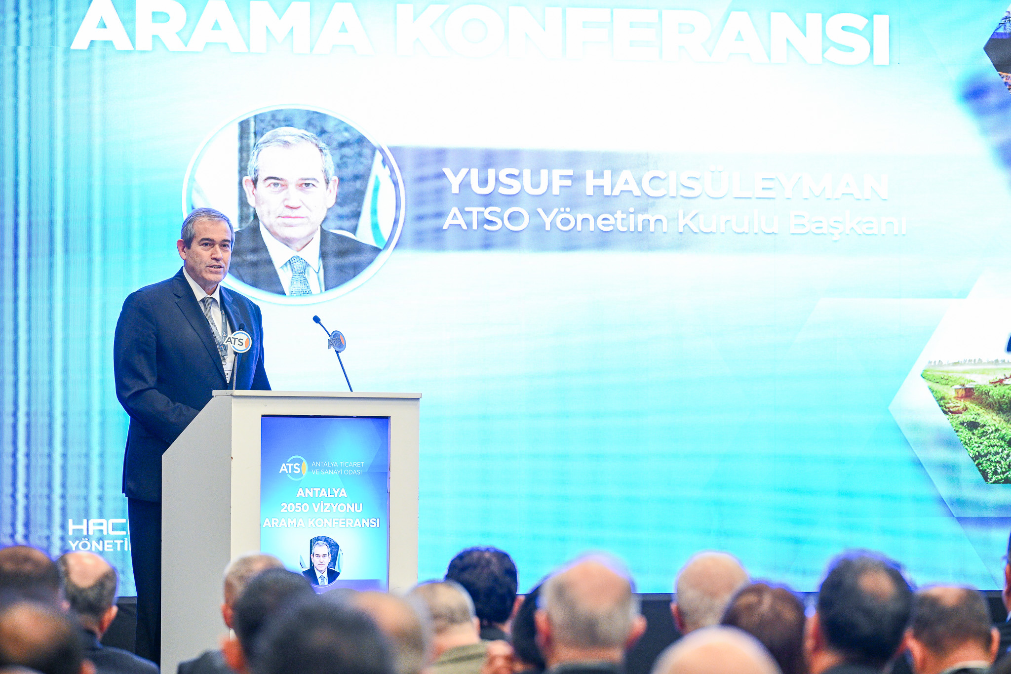 Toplantının açılış konuşmasını gerçekleştiren ATSO Yönetim Kurulu Başkanı Yusuf Hacısüleyman, şehrin geleceğini planlama konusundaki heyecanlarını vurgulayarak, “ATSO olarak şehrimizin geleceğini planlama konusunda büyük heyecan içinde olduğumuzu ifade etmek isterim. Çünkü ilk kez Antalya’nın uzun vadeli geleceğini konuşacağız, ilk kez camiamızın her kesiminden temsilcileri bir araya getiriyoruz ve ilk kez Antalya’yı farklı sektörler boyutunda, şehircilik boyutunda, insan, çevre ve iklim değişikliği boyutunda her açıdan değerlendireceğiz” dedi.