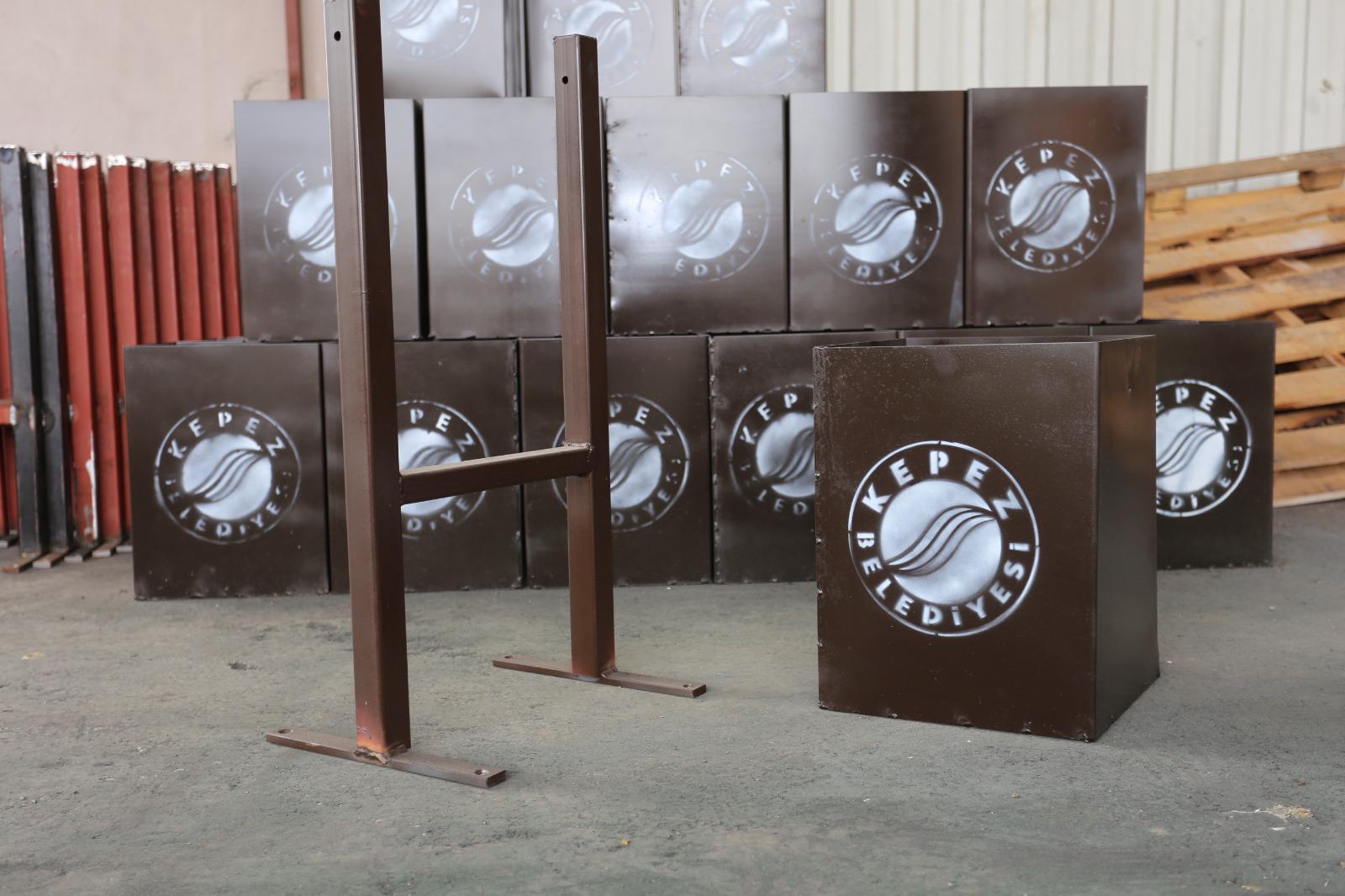 Kepez’in 68 mahallesindeki park ve sosyal alanlarda bulunan ayaklı ahşap çöp kovaları, dayanıklı metal malzemelerle yenilenerek daha güvenli hale getiriliyor. Kepez Belediyesi, hizmet çalışmalarını ilçenin dört bir tarafında sürdürürken, bir yandan da kamu kaynaklarını etkin ve verimli kullanmak için ihtiyaç duyulan malzemeleri kendi iş gücüyle üretiyor. Park ve sosyal alanlara konulan ayaklı metal çöp kovaları, Park ve Bahçeler Müdürlüğü’nün Metal İşleri Atölyesi’nde belediye işçilerinin usta ellerinde hayat buluyor. Metal İşleri Atölyesi, ilçenin ihtiyaç duyduğu malzemeleri belediye imkanlarıyla üreterek hem tasarruf sağlıyor, hem de çevreci uygulamalara öncülük ediyor.