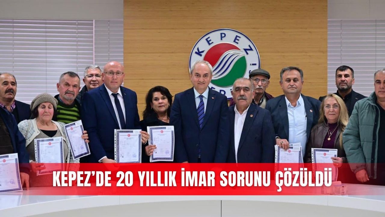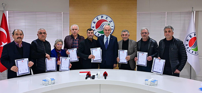 Kepez Belediyesi, bir yandan yol, park ve çevre düzenlemeleriyle vatandaşların yaşam kalitesini artırırken, diğer yandan modern ve planlı kentleşmenin temellerini güçlendiren uygulamaları hayata geçirmeye devam ediyor. İlçenin uzun yıllardır çözüm bekleyen sorunlarını kararlılıkla ele alan Kepez Belediyesi, bu kapsamda önemli bir imar sorununu daha çözüme kavuşturdu. Barış, Kazım Karabekir, Yavuz Selim ve Esentepe mahallelerinde yaklaşık 20 yıldır devam eden imar sorunu, yapılan çalışmaların ardından sona erdi. İmar uygulamasının tamamlanmasıyla birlikte, hak sahipleri tapusuna kavuştu. Kepez Belediyesi hizmet binasında düzenlenen tapu teslim töreninde Başkan Mesut Kocagöz, hak sahipleriyle bir araya gelerek tapularını takdim etti. Barış Mahallesi Muhtarı İsmet Keskin, Kazım Karabekir Mahallesi Muhtarı Süleyman Demirel, Yavuz Selim Mahallesi Muhtarı Ekrem Aslan ve Esentepe Mahallesi Muhtarı Bekir Yılmaz'ın katılımıyla hak sahipleri tapularına kavuştu.