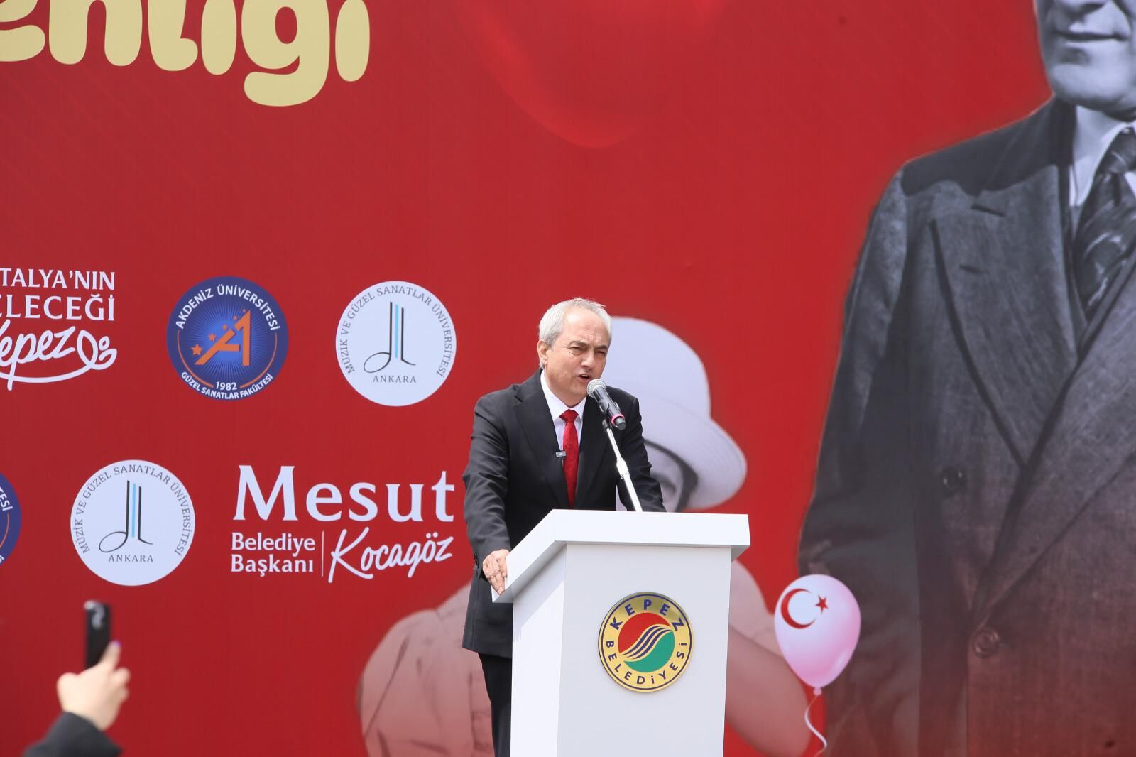 Dokumapark’taki etkinlik alanında konuşan Kepez Belediye Başkanı Mesut Kocagöz, alanı dolduran çocuklara “Küçük hanımlar, küçük beyler” diyerek seslendi. 23 Nisan Ulusal Egemenlik ve Çocuk Bayramı’nı kutlayan Başkan Kocagöz, “Bugün Türkiye Büyük Millet Meclisi’nin 106. yılını kutluyoruz. Ulusal bağımsızlığın ilk günü… Tam 106 yıl önce ‘Egemenlik kayıtsız şartsız milletindir’ diyen Gazi Mustafa Kemal Atatürk’ün çocuklara armağan ettiği, dünyada ilk kez çocuklara ithaf edilen bir bayramı kutluyoruz” dedi.