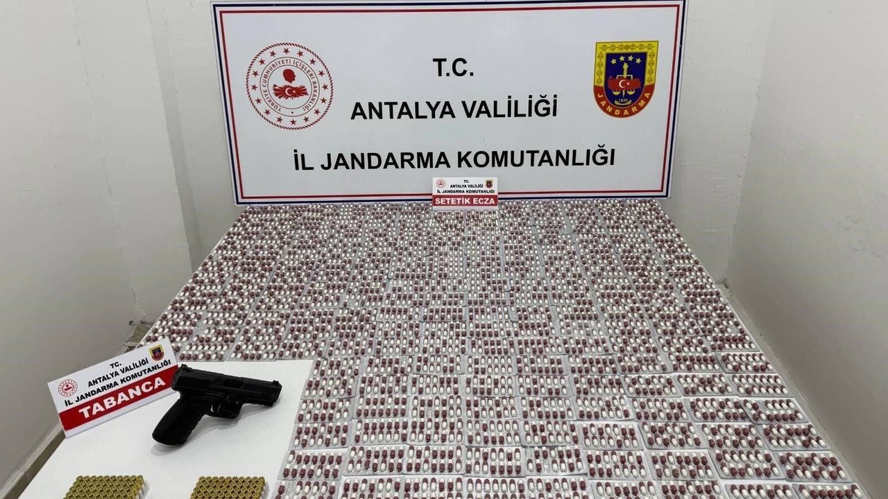 Edinilen bilgiye göre, Antalya İl Jandarma Komutanlığı tarafından yürütülen çalışmalar çerçevesinde, Antalya Cumhuriyet Başsavcılığı'nın talimatıyla Kepez ilçesinde uyuşturucuyla mücadeleye yönelik icra edilen operasyonda, 2 şüpheli şahsın ikametinde arama yapıldı. Yapılan aramada, bin 298 adet Gerica sentetik uyuşturucu hap, 1 adet 9 mm ruhsatsız tabanca ve şarjörü ve 113 adet tabanca mermisi ele geçirildi.