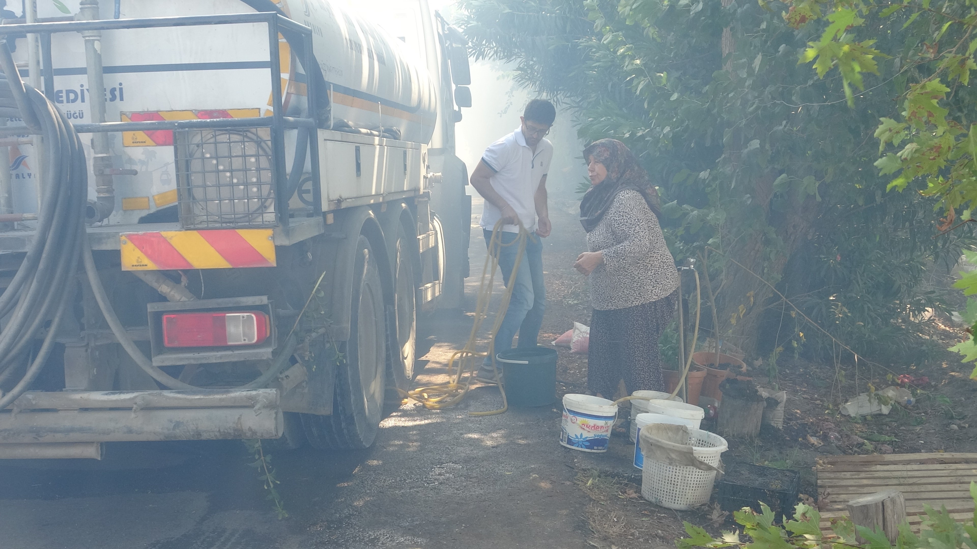 Evi alevlere teslim olan bir vatandaş, "Şurada iki tane yaşlı mahsur kaldı evin içinde. Benim evim komple yandı. Bütün mahalle yandı" ifadeleriyle çaresizliğini dile getirdi. Bir başka noktada ise alevler tek katlı müstakil bir evin duvarına kadar dayandı. Musluğa bağladığı hortumla alevleri söndürmeye çalışan genç kadın, çevreden yardım istedi.