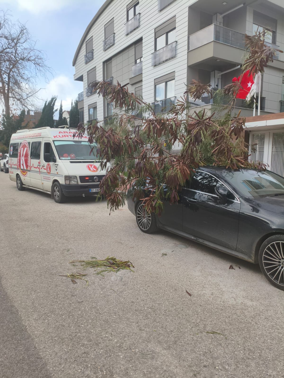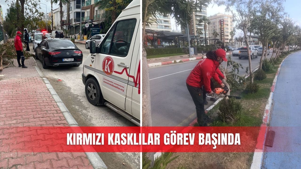Antalya’da önceki gün etkili olan şiddetli fırtına, kent genelinde hayatı olumsuz etkiledi. Fırtına nedeniyle bazı bölgelerde ağaçlar devrilirken, park halindeki araçlar zarar gördü ve trafikte aksamalar yaşandı. Olumsuz hava koşulları sonrası Kırmızı Kasklılar Arama Kurtarma Ekibi, ihbar üzerine hızla olay yerine intikal etti. Fırtınanın etkisiyle araçların üzerine devrilen ve yolu kapatan ağaçlara müdahale eden ekipler, güvenlik önlemleri alarak kesim ve kaldırma çalışması gerçekleştirdi.