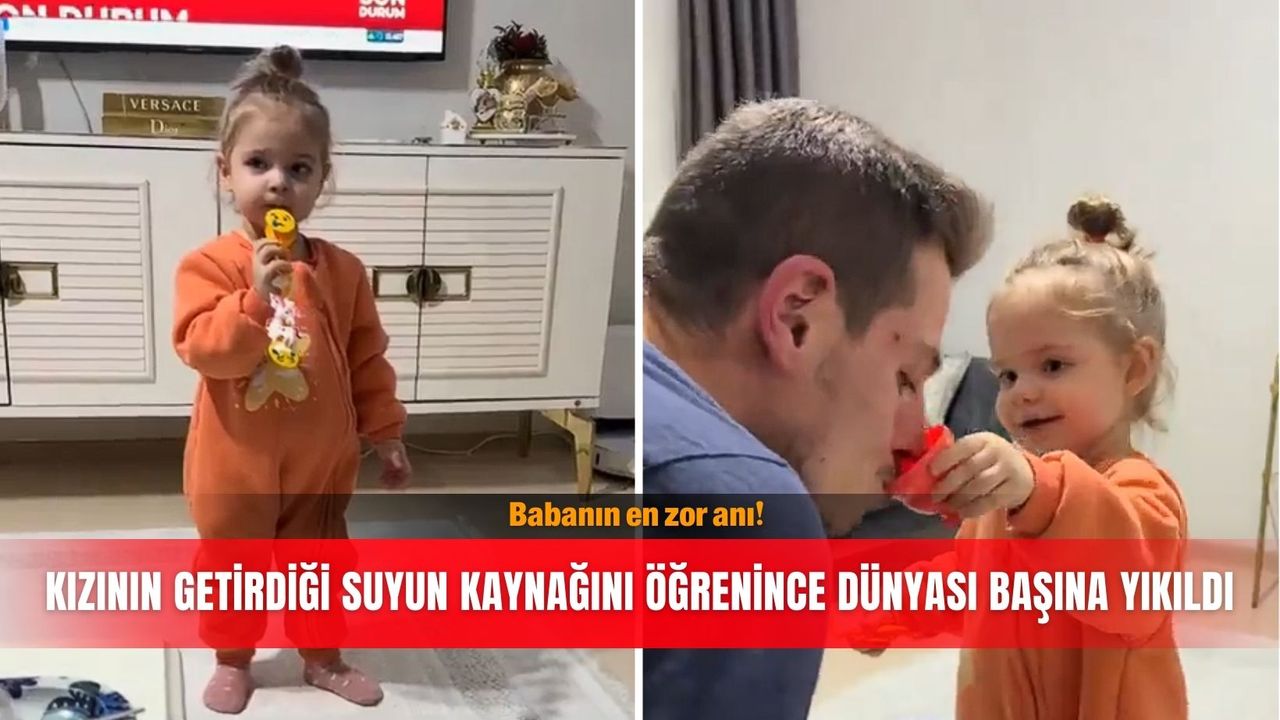 Evde oyun oynayan küçük kızının, oyuncak sebilden bardak bardak su doldurup babasına içirdiğini gören anne, bu tatlı anları kayda alırken beklemediği bir manzarayla karşılaştı. Kızının suyu mutfaktan değil, banyodaki klozetten doldurduğunu fark eden kadının yaşadığı şok sosyal medyada izlenme rekorları kırdı. Görüntülerde, küçük kızın elindeki minik bardakla sürekli babasına su taşıdığı, babanın da kızının bu jestini geri çevirmeyerek suları afiyetle içtiği görülüyor. Kızının oyuncak sebilini kullandığını sanan anne, merakına yenik düşüp "Bu suyun kaynağı neresi?" diye küçük kızı takip edince gerçekle yüzleşti. Küçük kızın, oyuncak sebilin haznesini doldurmak için mutfak musluğu yerine banyoya gittiği ve bardağını klozetteki sudan doldurduğu anlaşıldı.